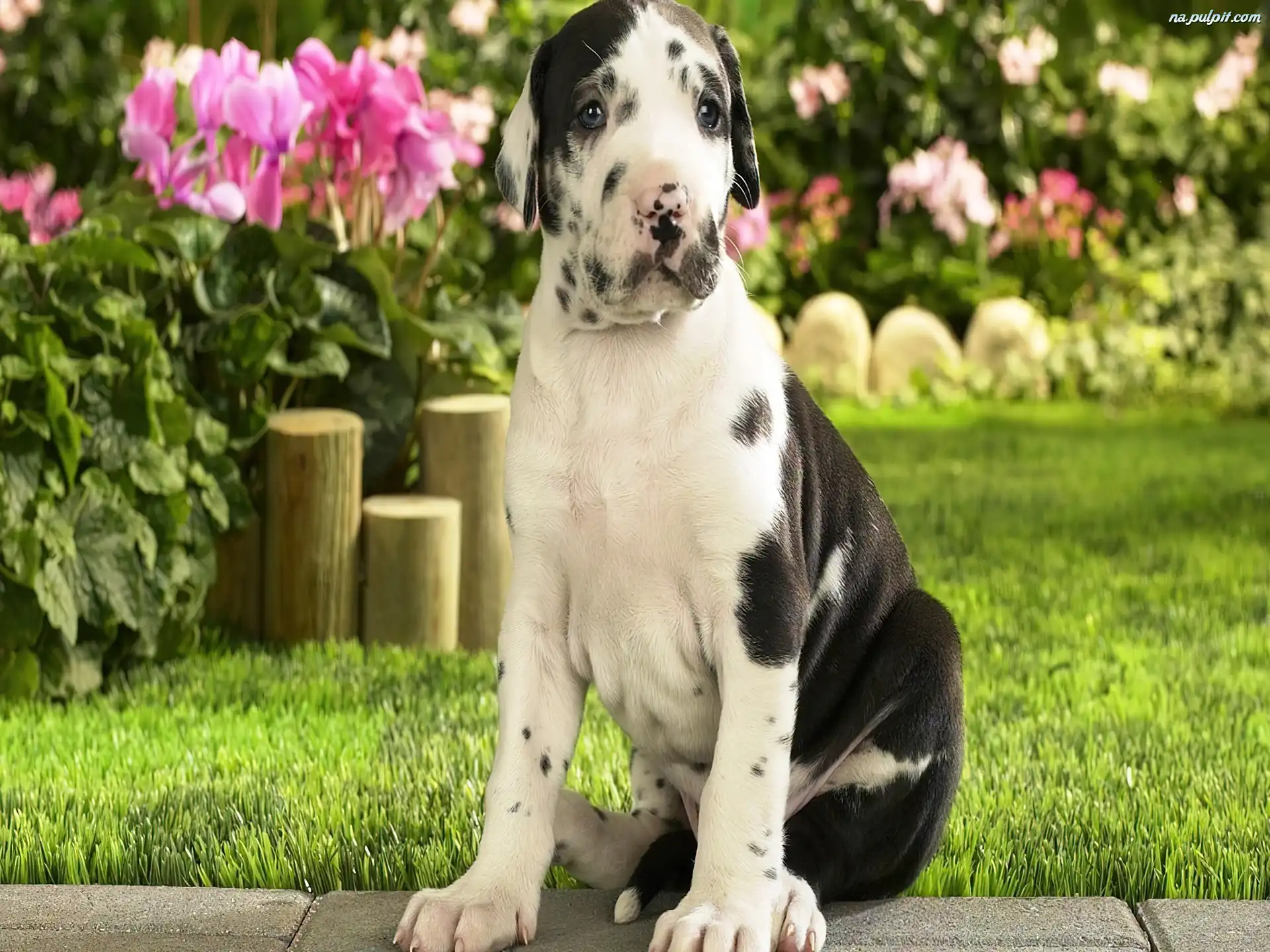 Kwiaty, Niemiecki, Dog, Młody, Trawa Na Pulpit