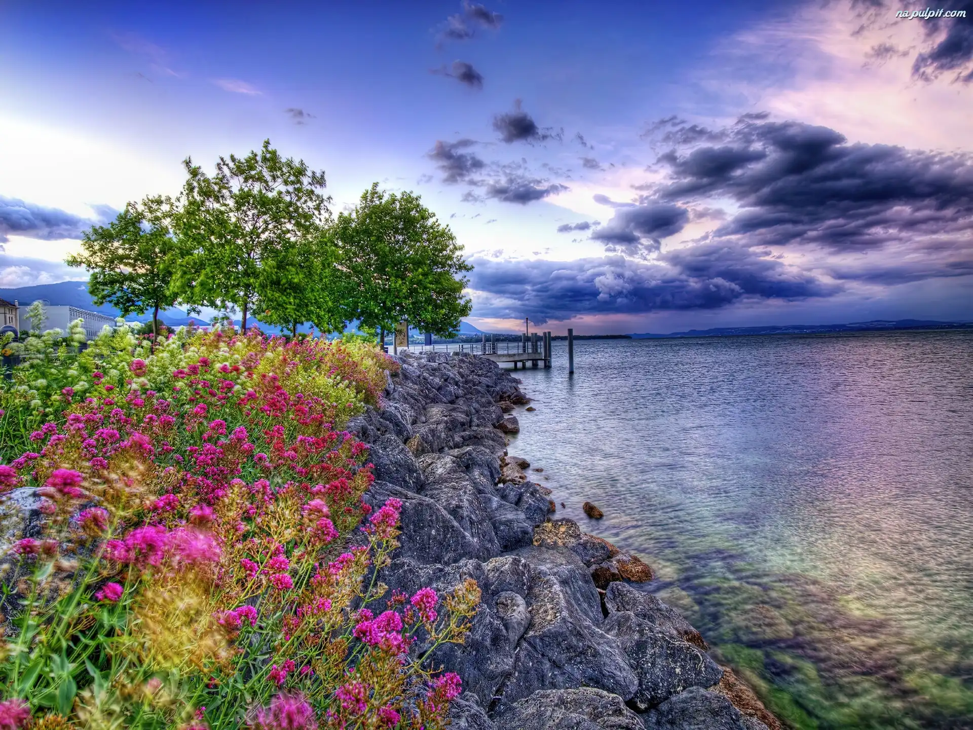 Kwiaty, Kamienny, Morze, Brzeg Na Pulpit