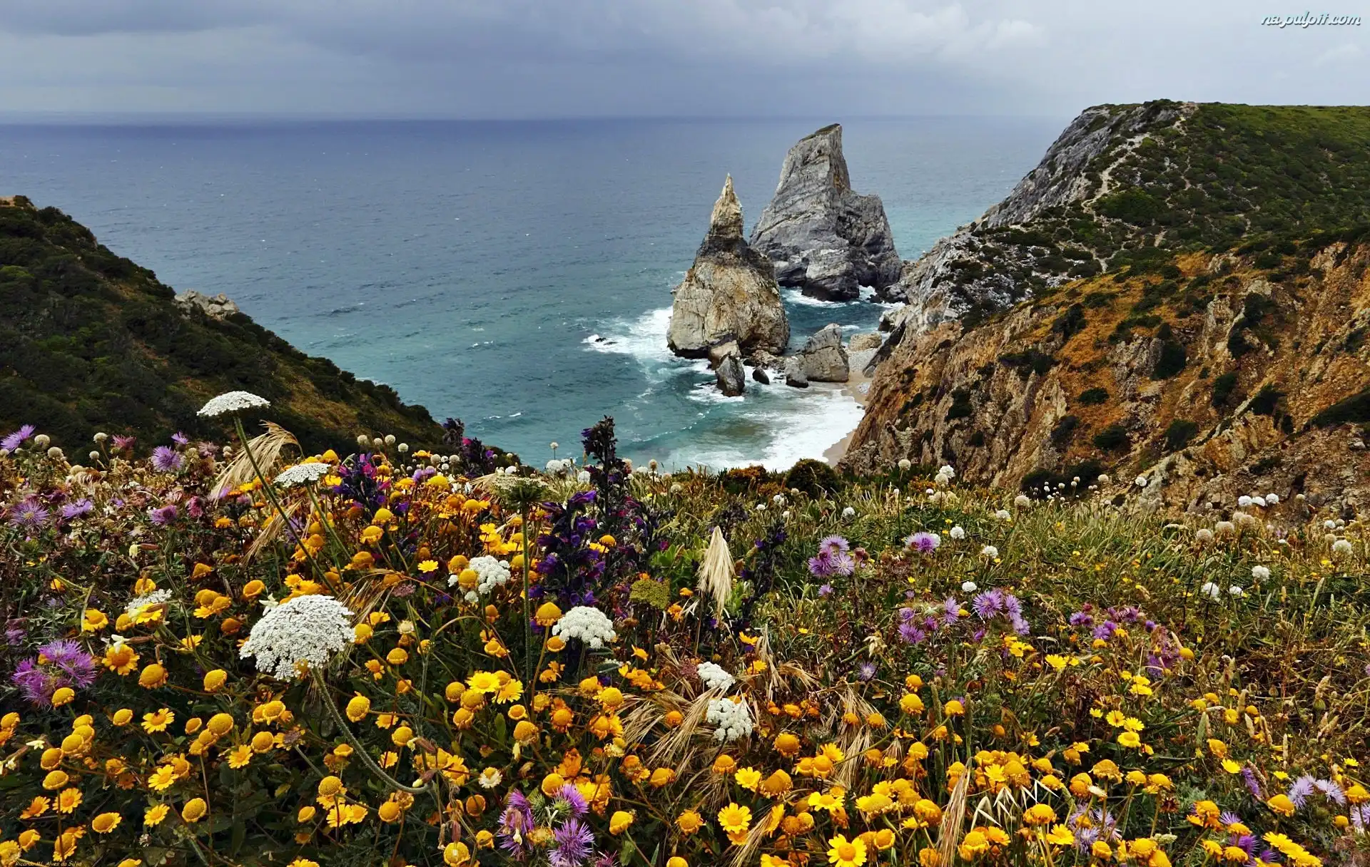 Kwiaty, Skały, Wybrzeże, Morze, Polne Na Pulpit