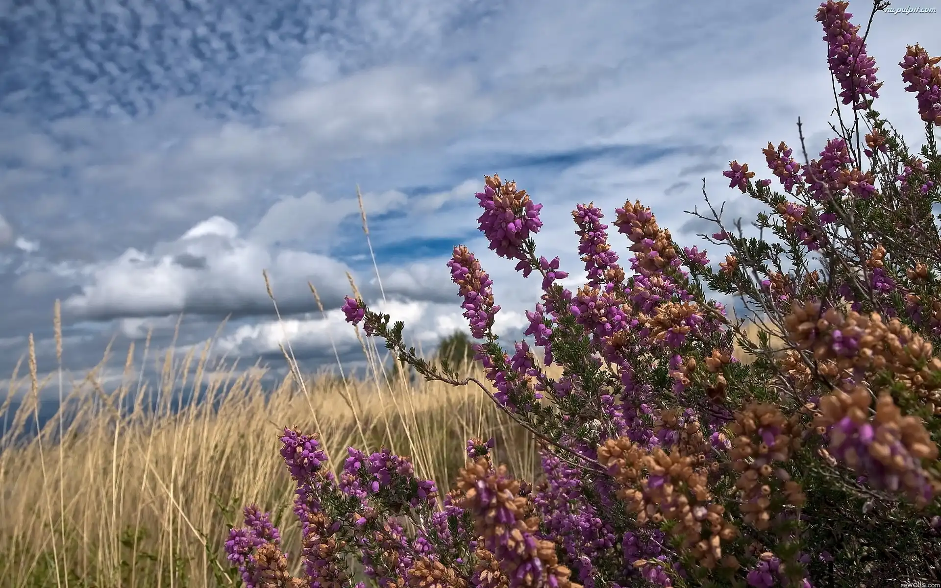 Kwiaty, Łąka, Chmury, Niebo, Polne