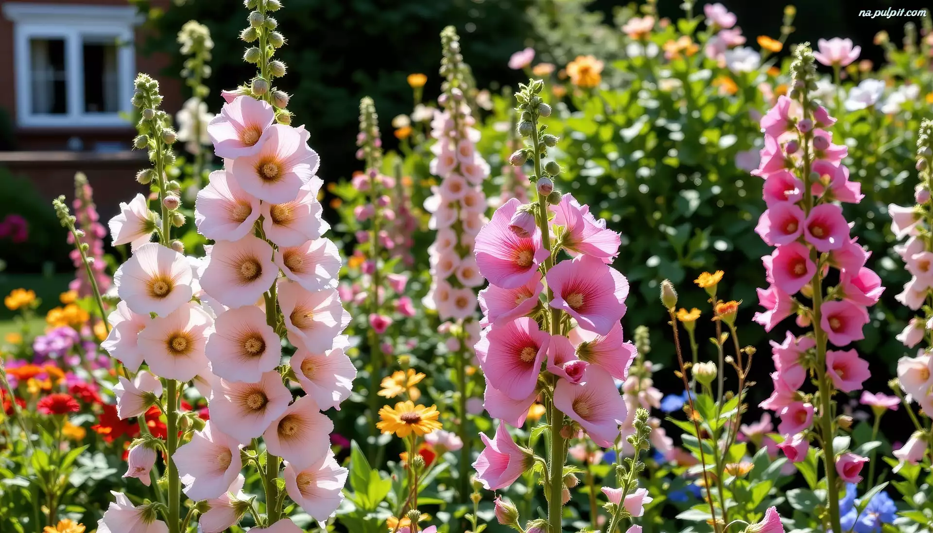 Malwy, Kwiaty, Ogród, Grafika AI Na Pulpit