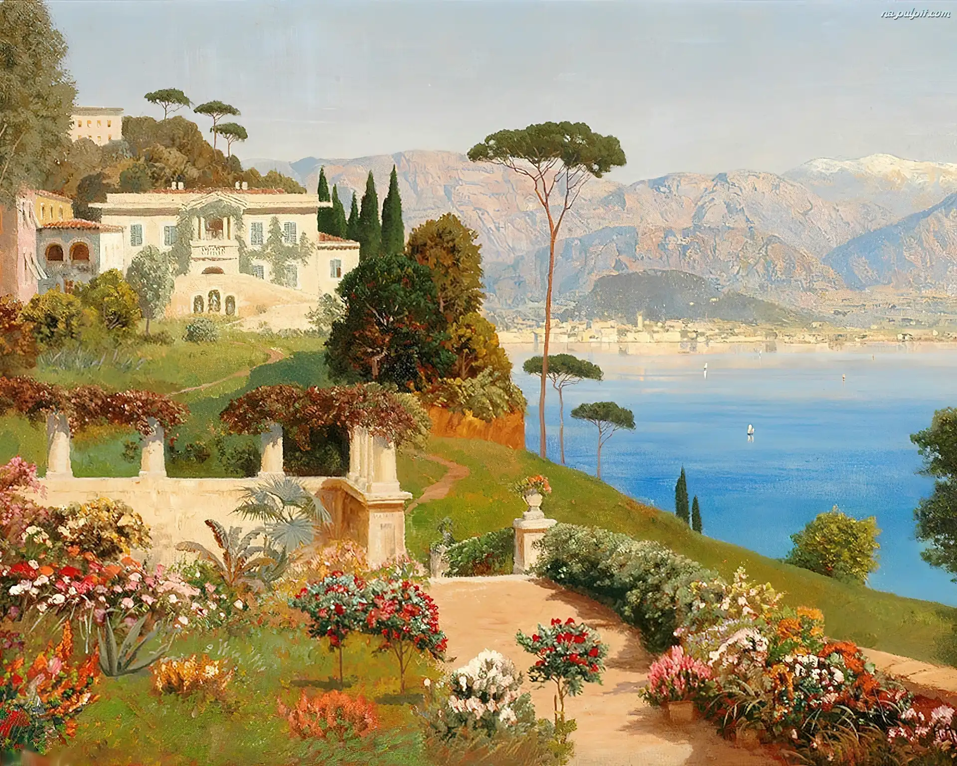 Kwiaty, Dom, Morze, Ogród, Góry Na Pulpit