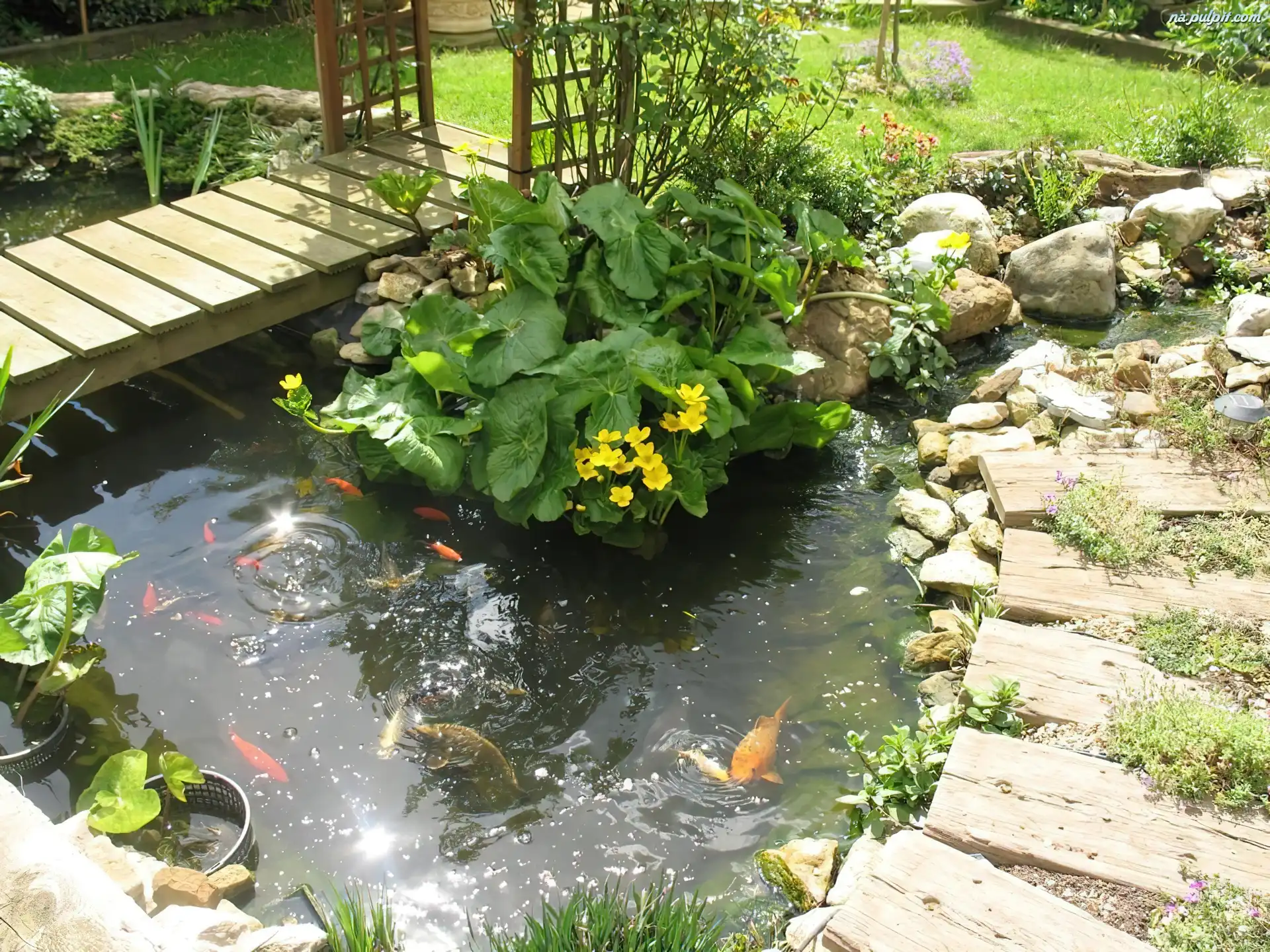 Kwiaty, Wodne, Oczko, Ogród, Ryby Na Pulpit