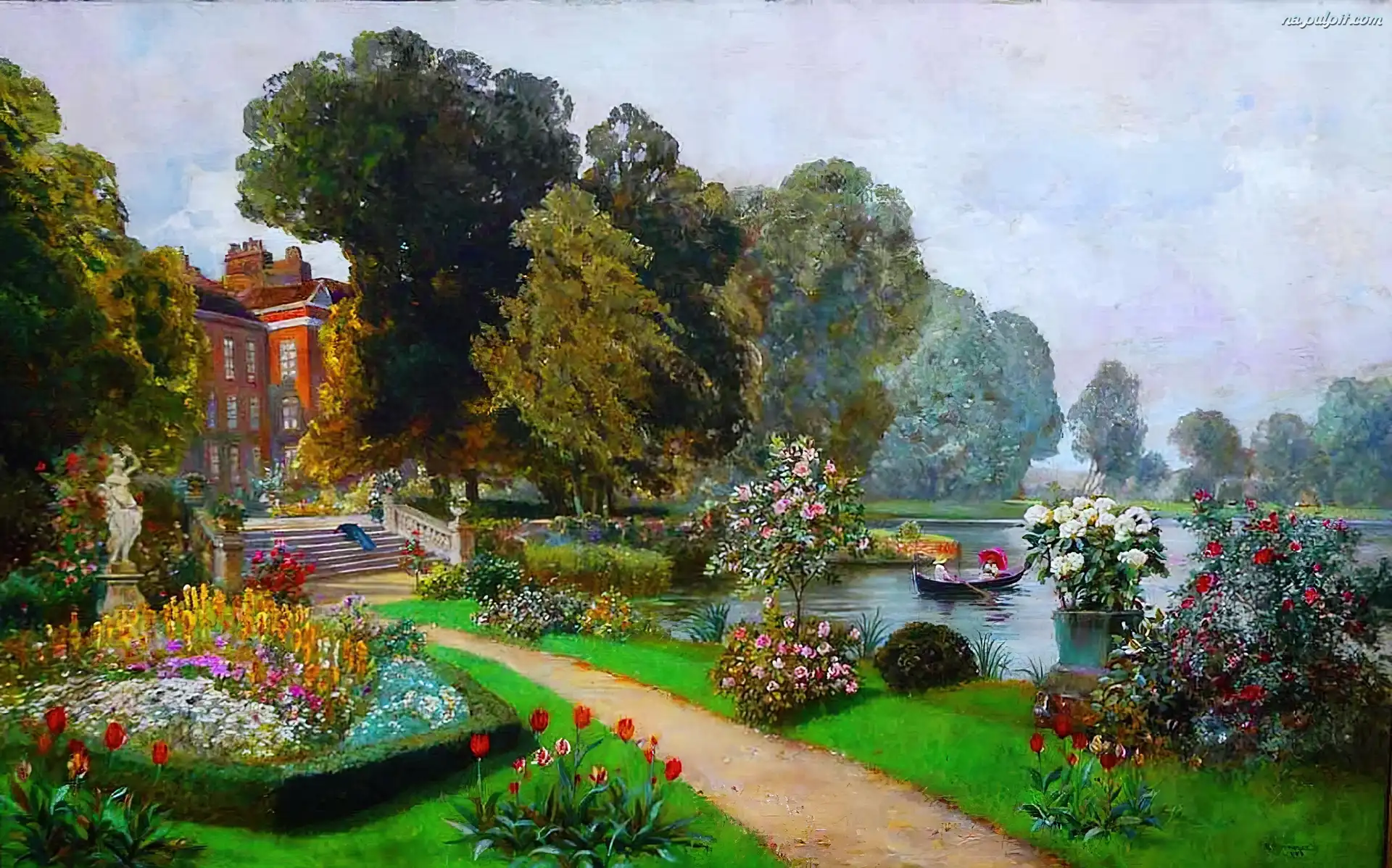 Kwiaty, Pałac, Ogród, Staw Na Pulpit