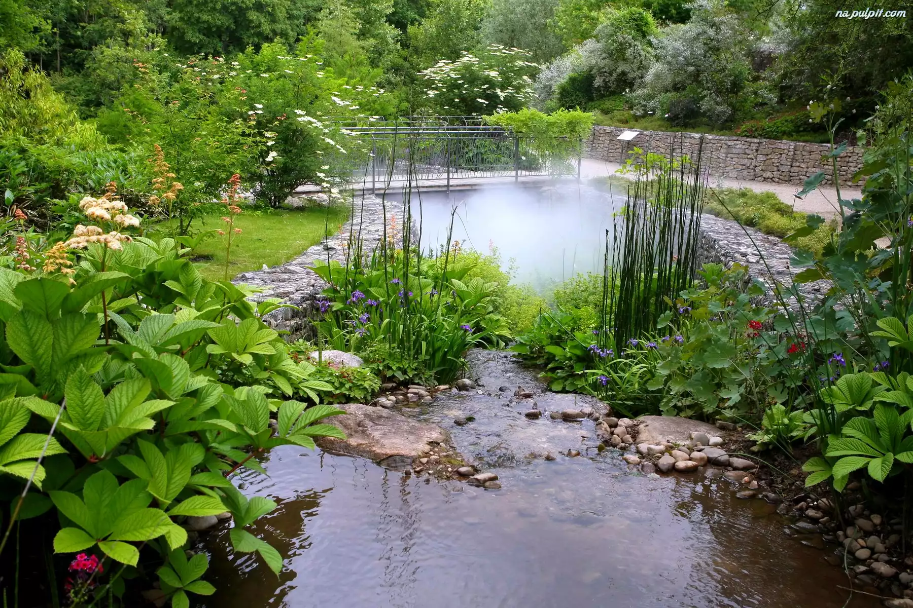 Kwiaty, Sadzawka, Ogród, Rośliny