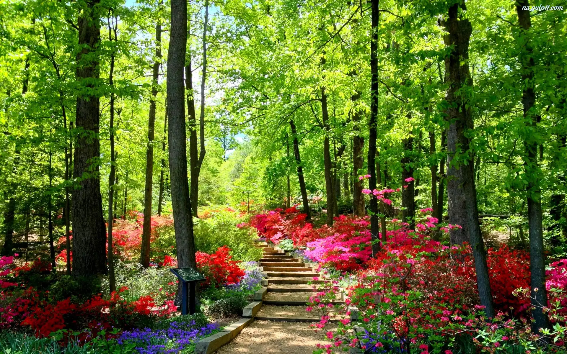 Kwiaty, Schody, Ogród, Drzewa Na Pulpit