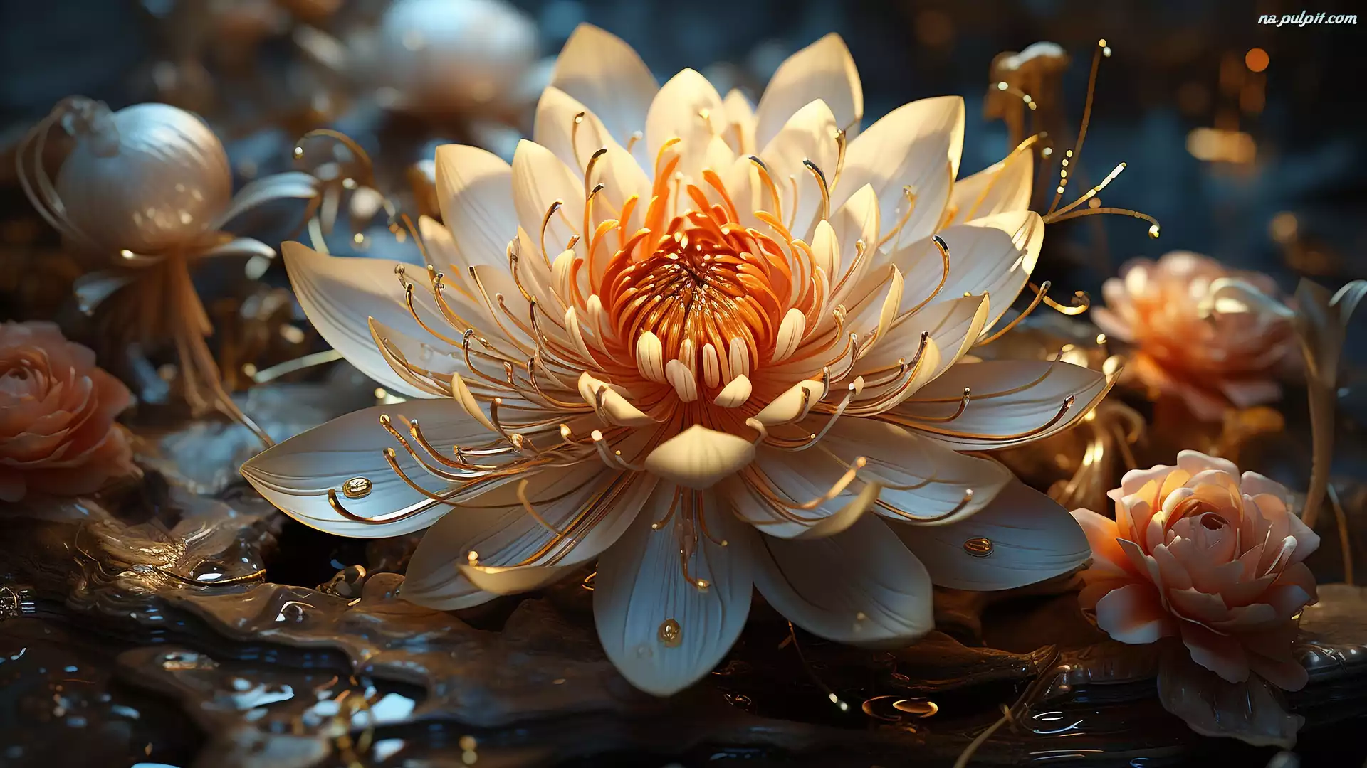 Odbicie, Lilia wodna, Kwiaty, 2D, Pąki Na Pulpit