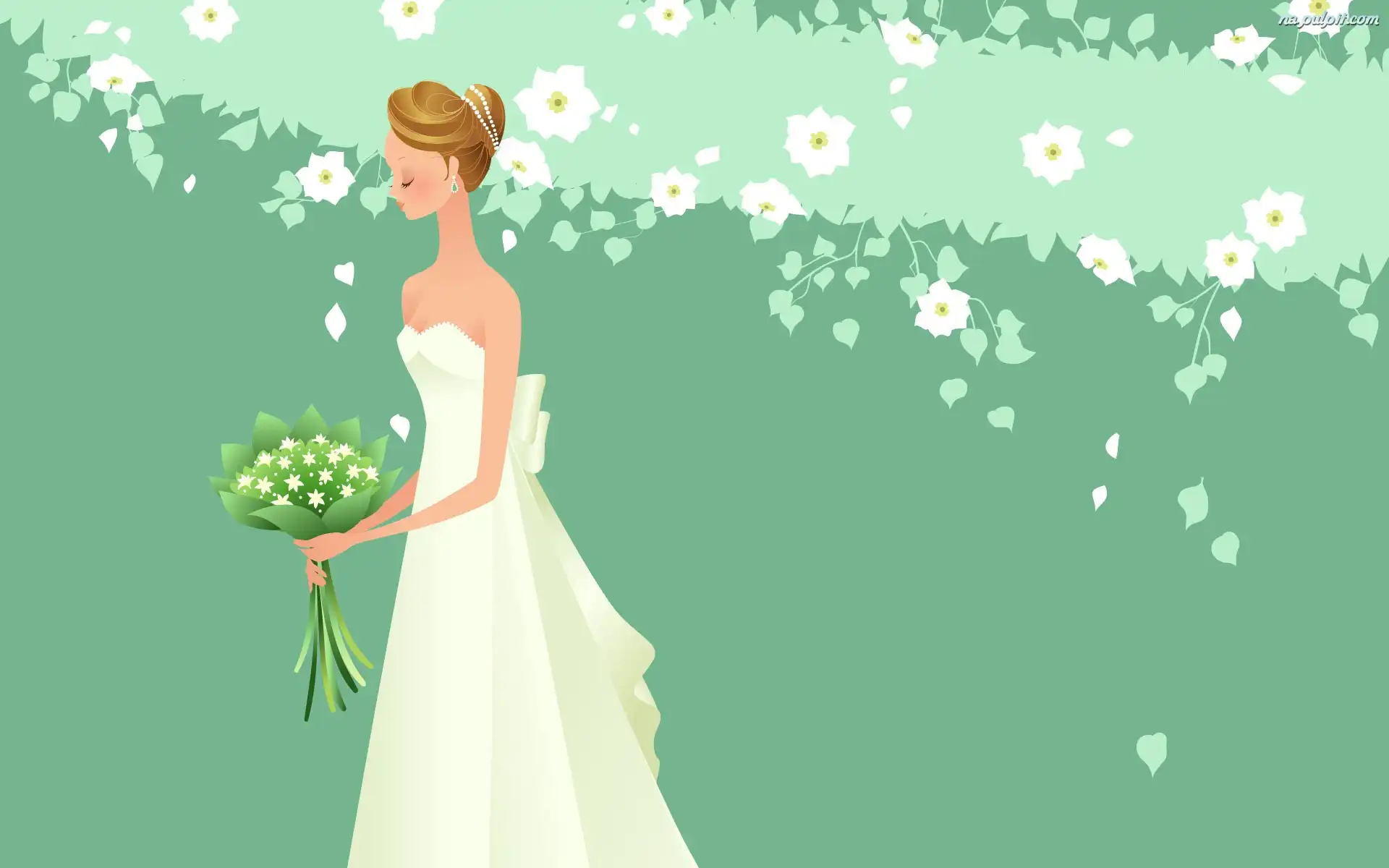 Kwiaty, Młoda, Panna, Bukiet