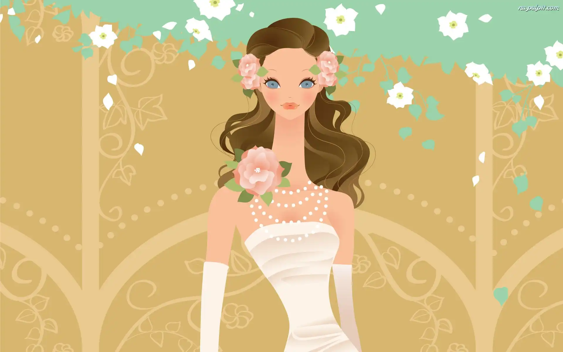 Kwiaty, Młoda, Panna, Włosy Na Pulpit