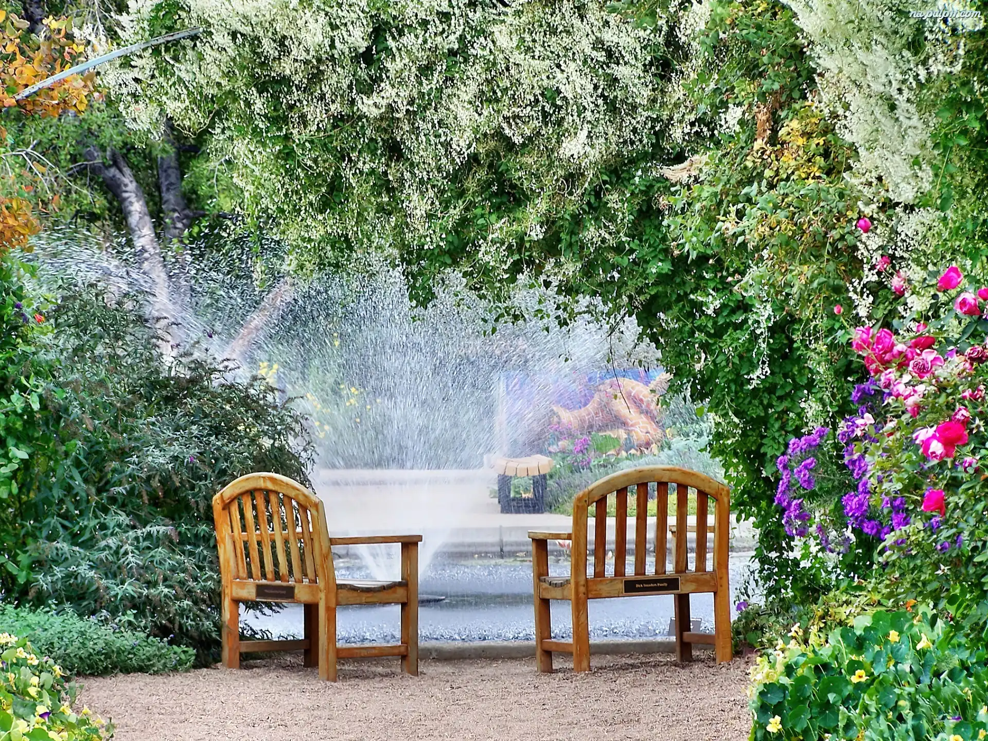 Kwiaty, Ławeczki, Park, Zieleń Na Pulpit