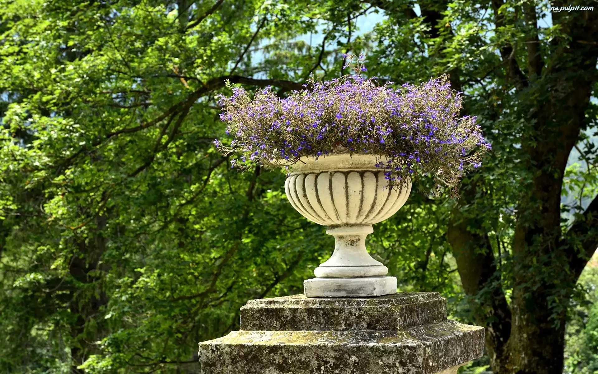 Kwiaty, Kamienna, Park, Waza Na Pulpit