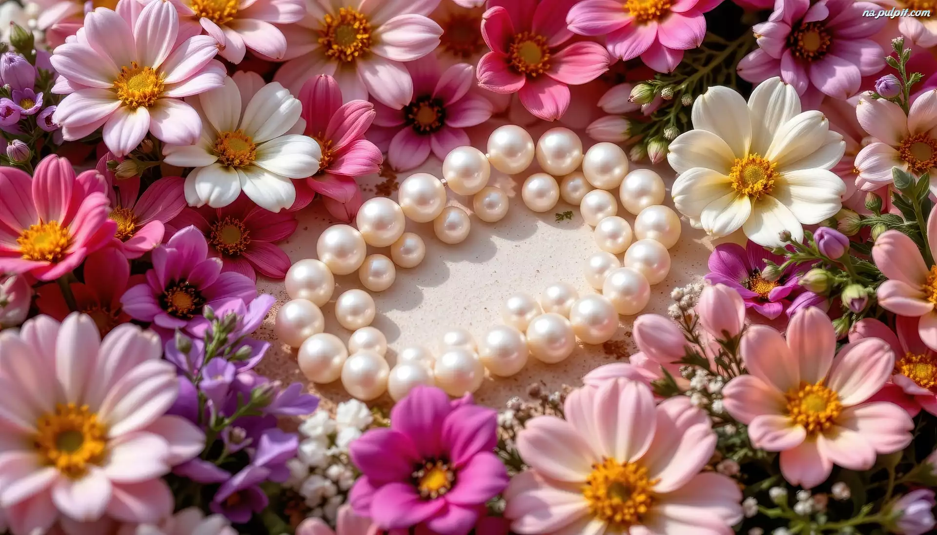 Korale, Białe, Fioletowe, Kwiaty, Różowe, Perły Na Pulpit