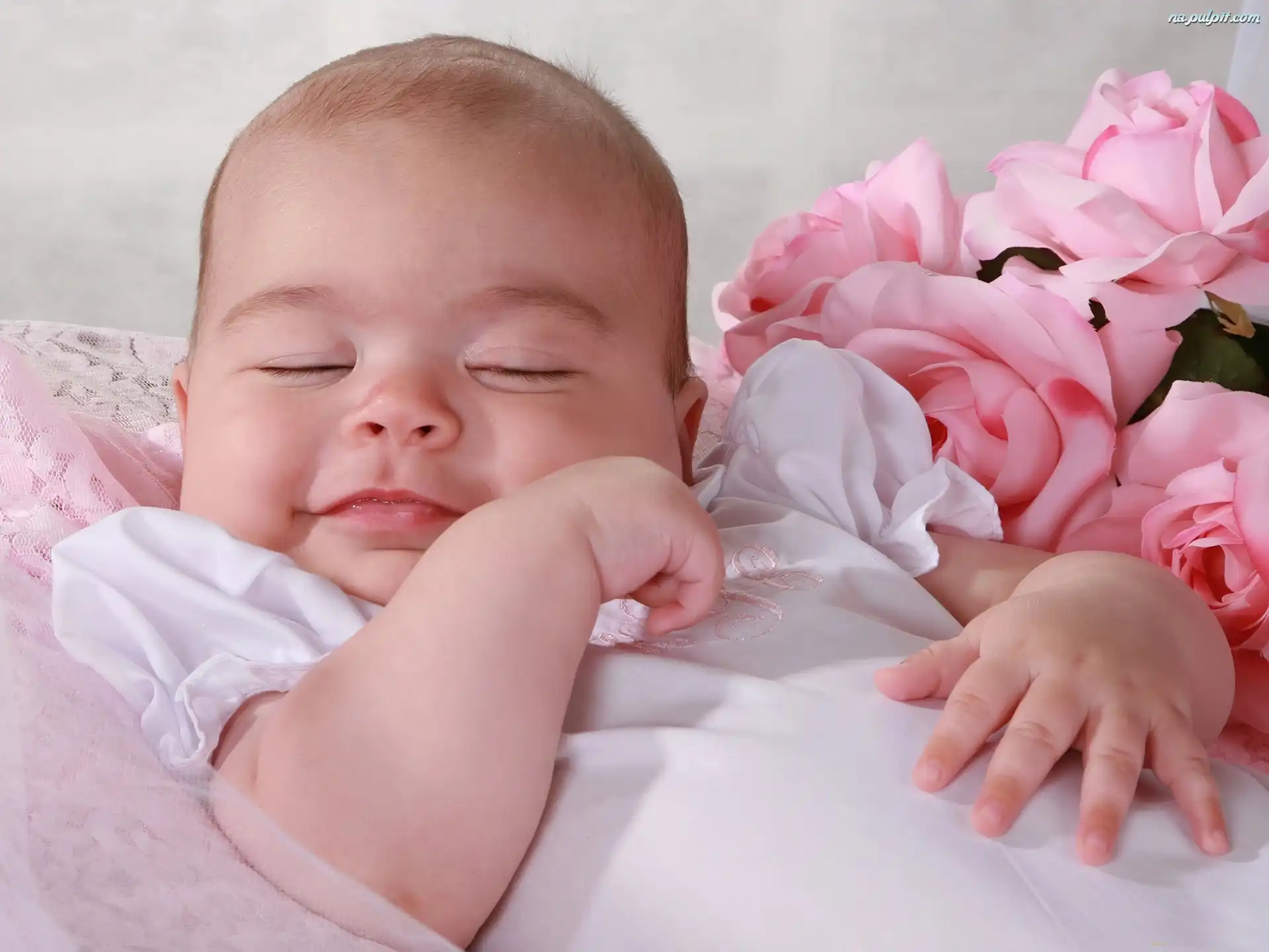 Kwiaty, Uśmiechnięte, Śpiące, Dziecko Na Pulpit