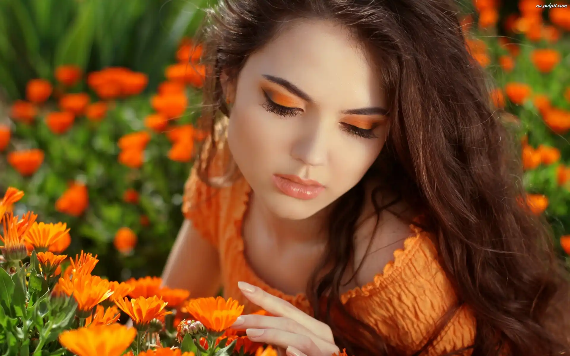 Kwiaty, Makijaż, Dziewczyna, Piękna, Ogród