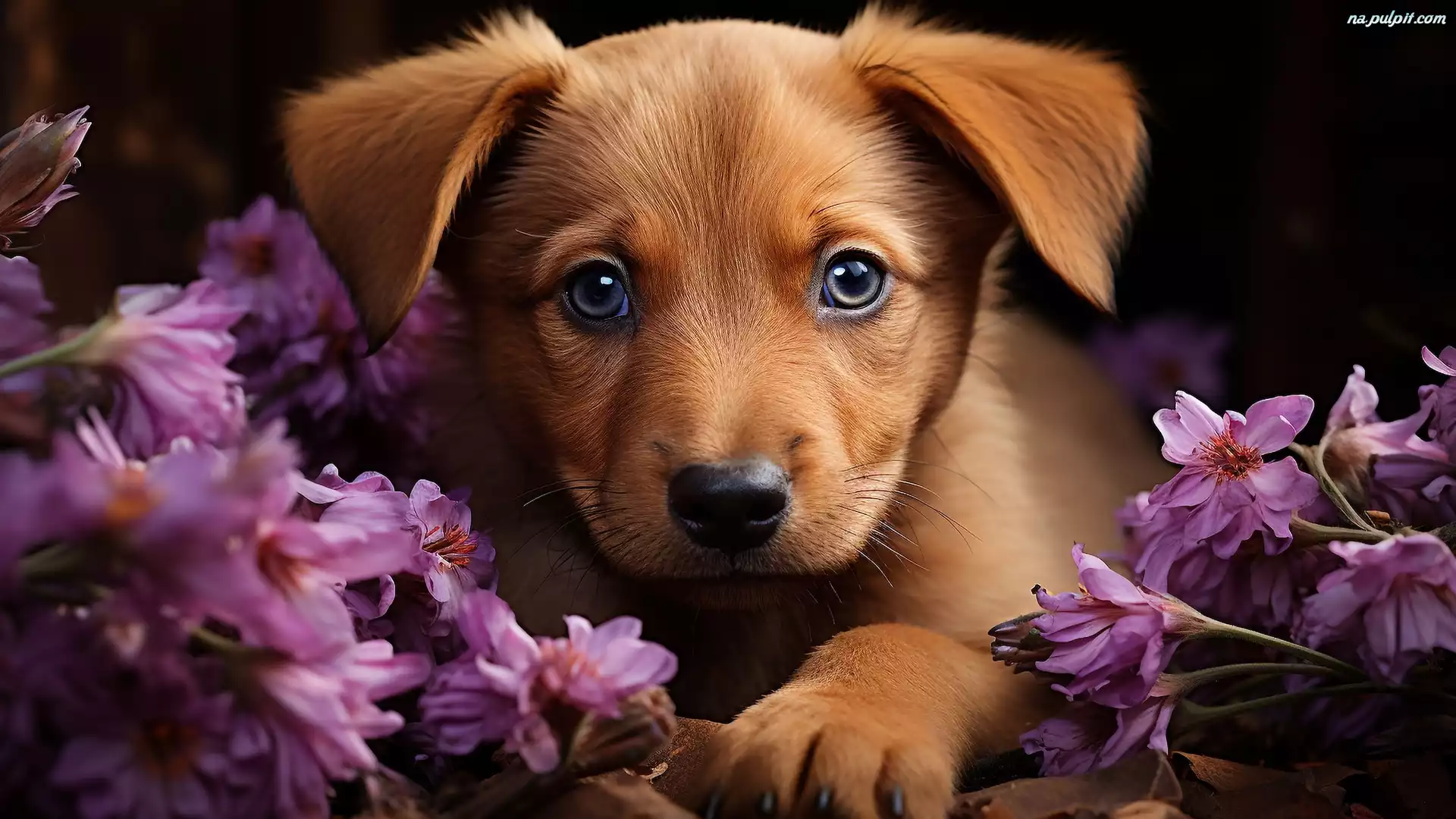 Pies, Szczeniak, Brązowy, Kwiaty Na Pulpit