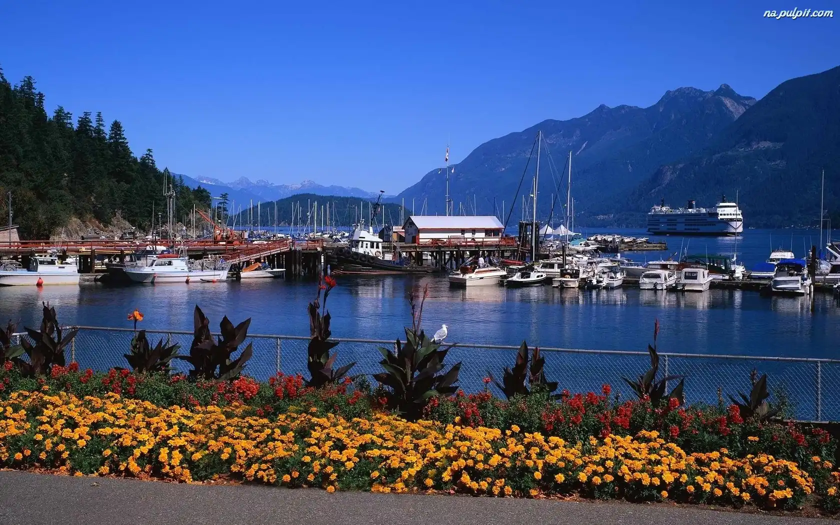 Kwiaty, Motorówki, Statek, Port, Góry Na Pulpit
