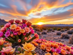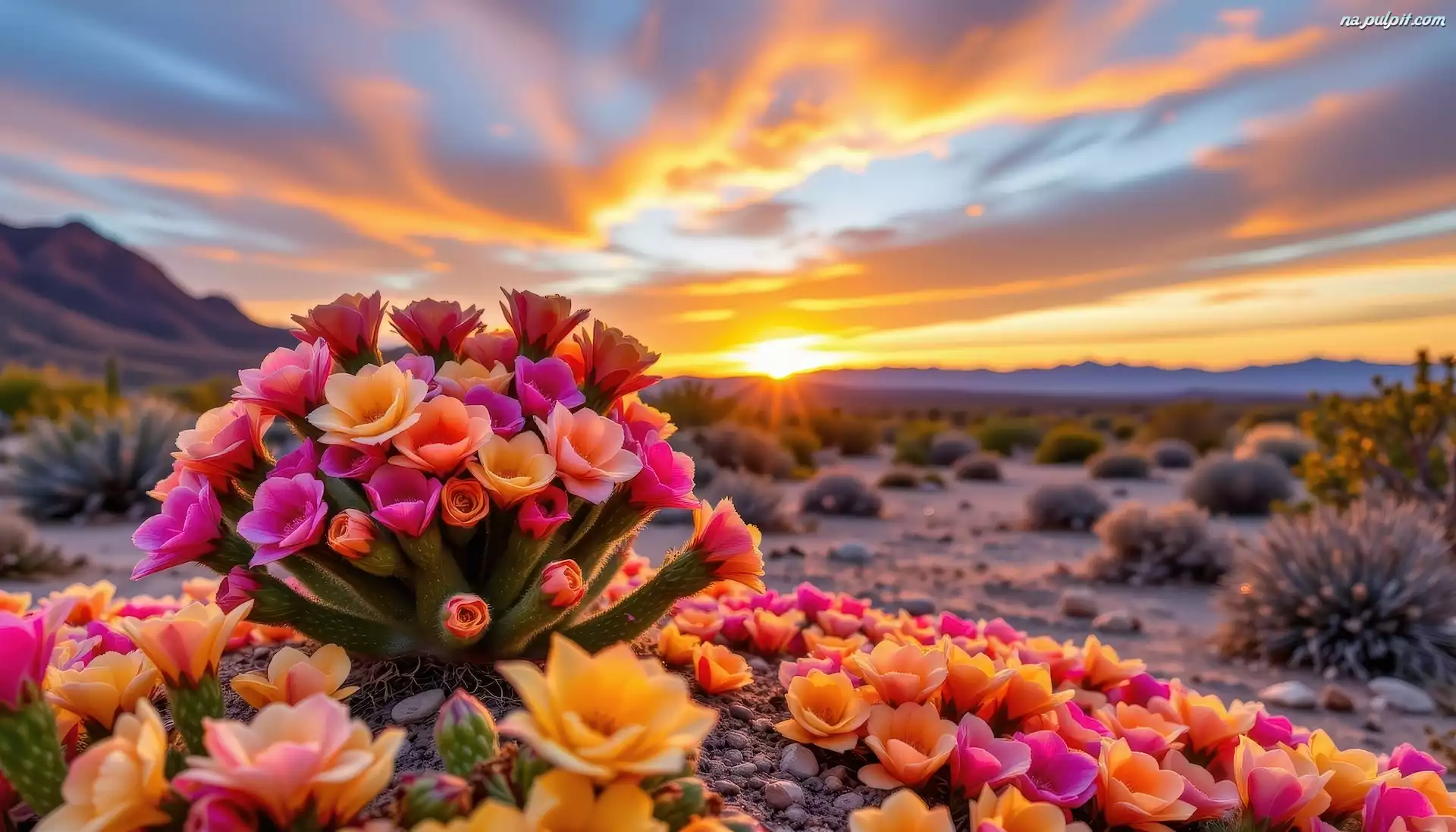 Kaktus, Kwiaty, Promienie słońca, AI Na Pulpit