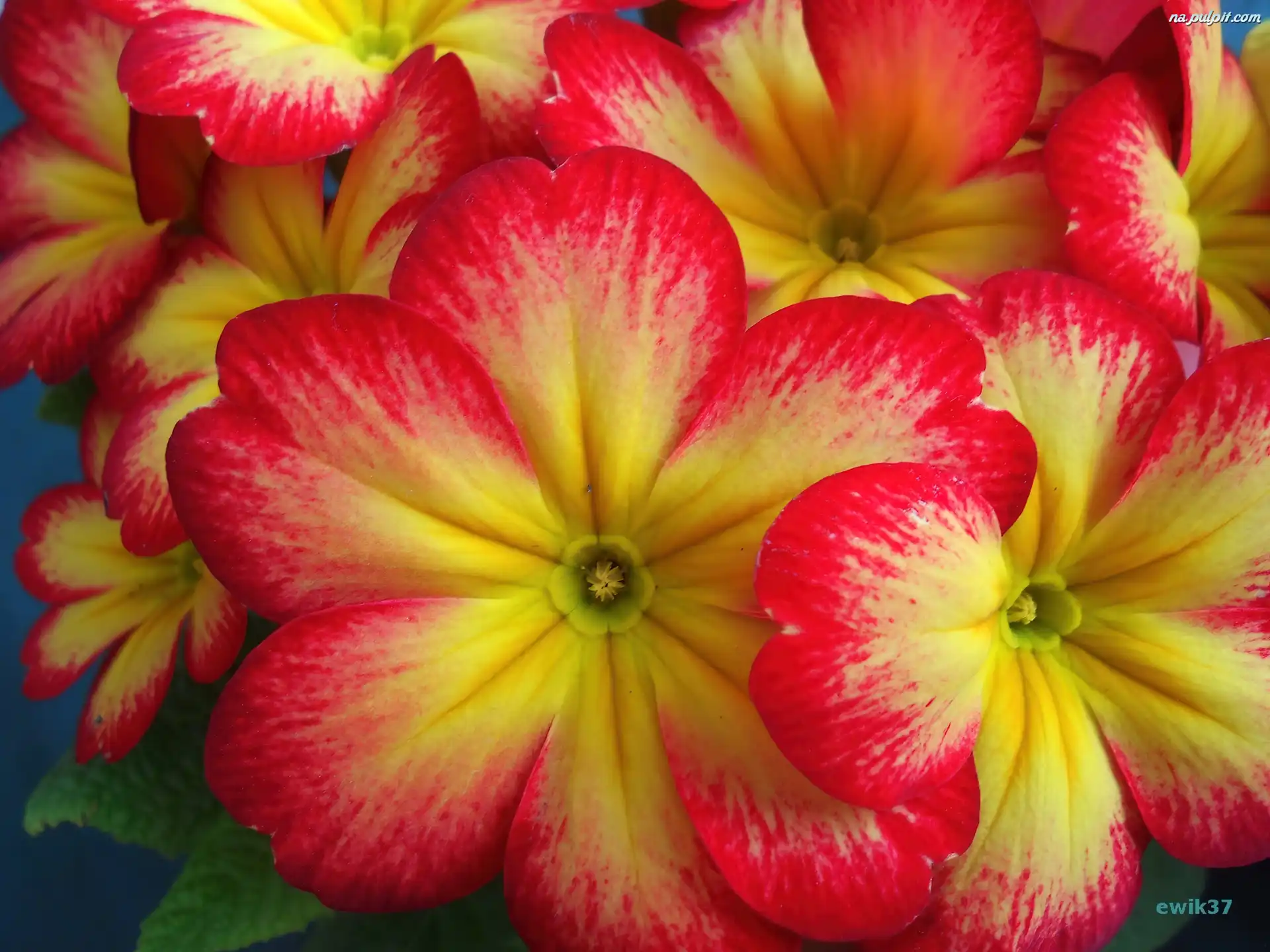 Kwiaty, Czerwono, Prymula, Żółte