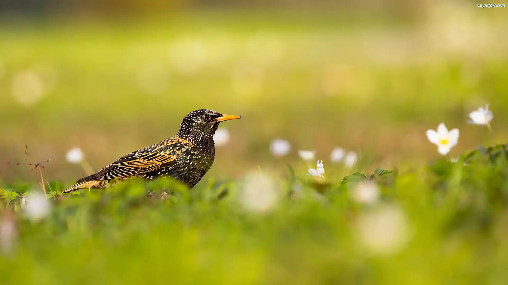Ptak, Szpak, Rośliny, Kwiaty Na Pulpit