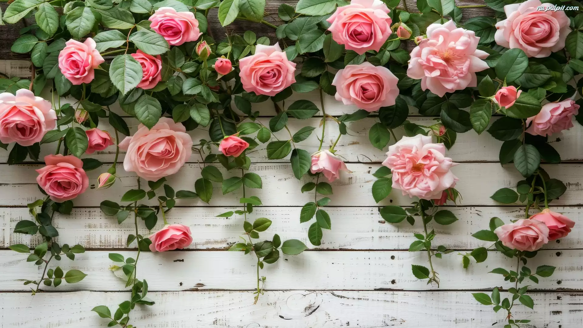 Drewno, Kwiaty, Róże, Deski, Liście Na Pulpit