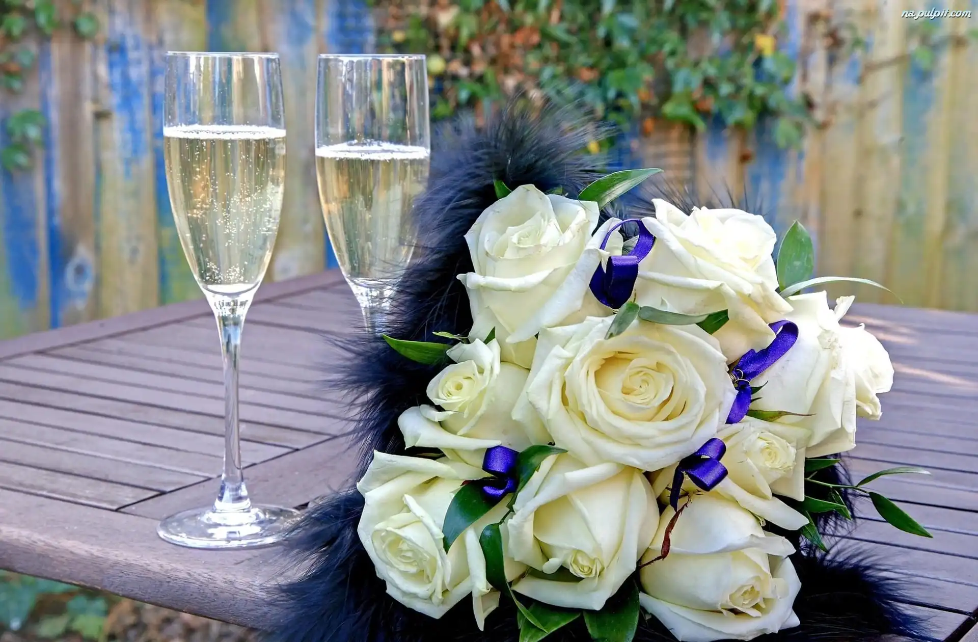 Róże, Kwiaty, Ślubne, Bukiet Kwiatów, Białe, Szampan Na Pulpit