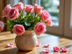 Wazon, Kwiaty, Różowe, Stół, Róże