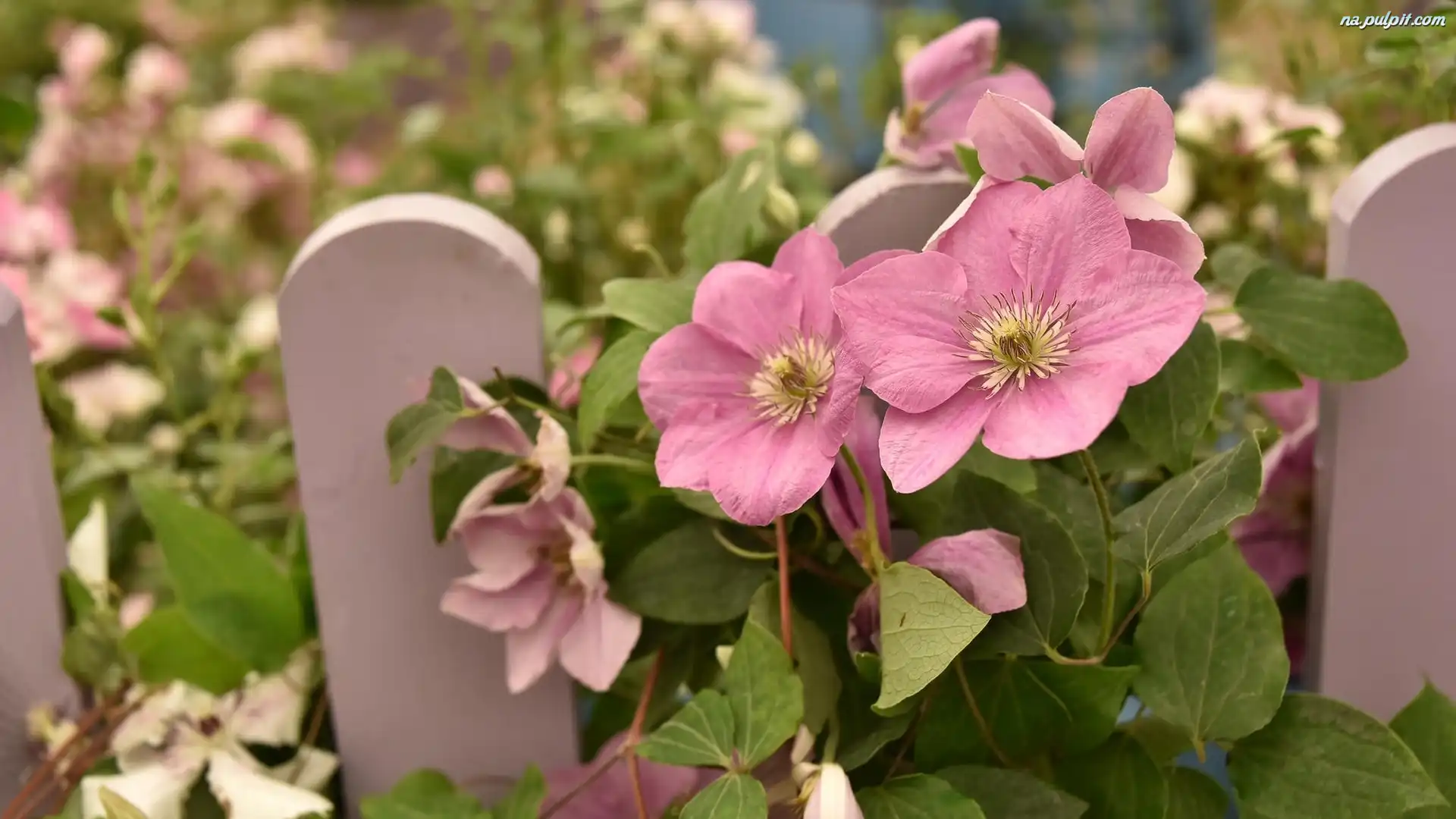 Kwiaty, Rozmyte, Tło, Clematis, Różowe, Płotek Na Pulpit