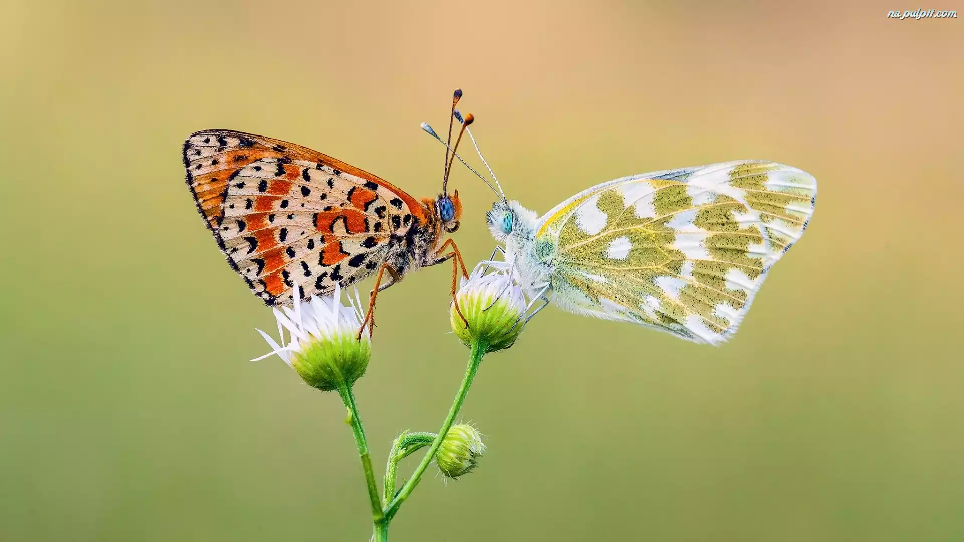 Motyle, Kwiaty, Makro, Przeplatka didyma, Dwa, Bielinek rukiewnik Na Pulpit