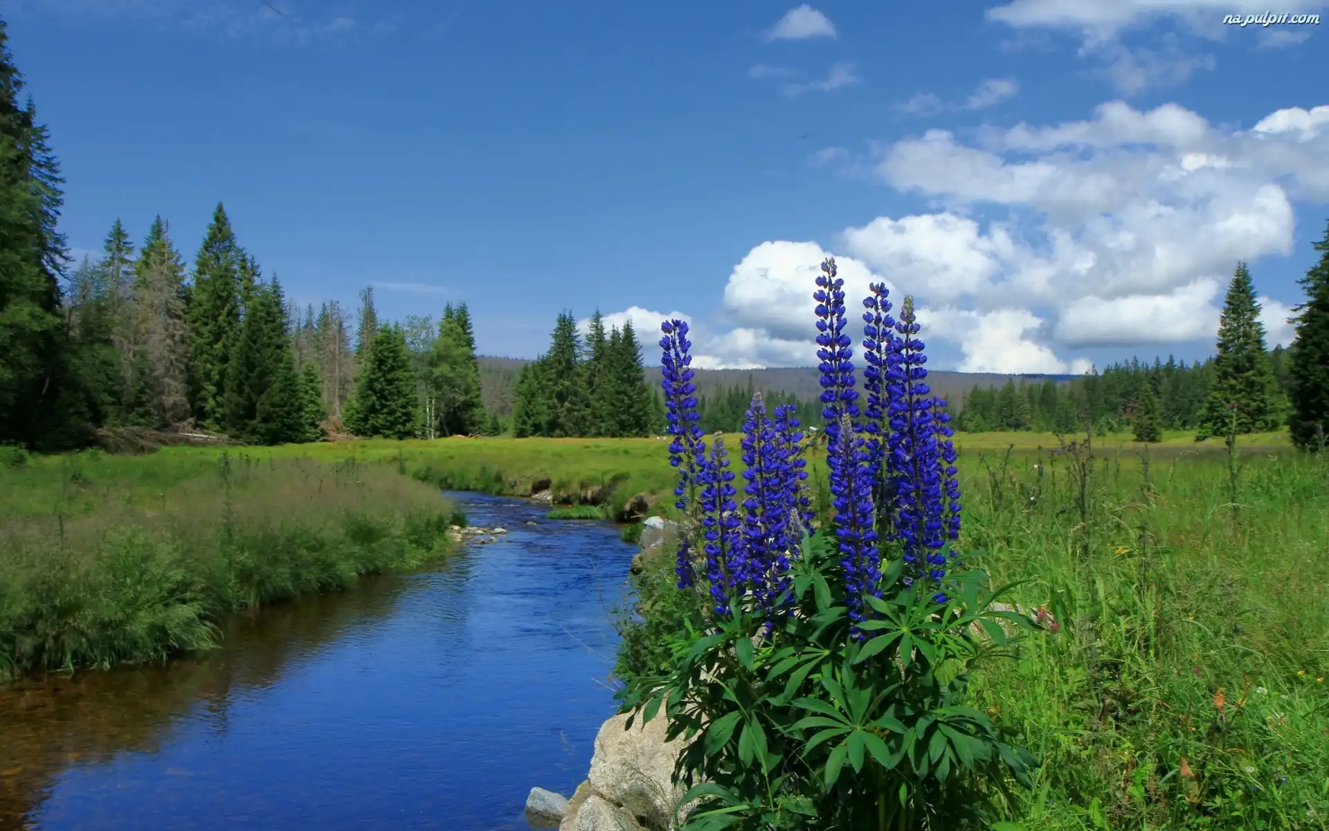 Kwiaty, Lasy, Rzeka, Góry Na Pulpit