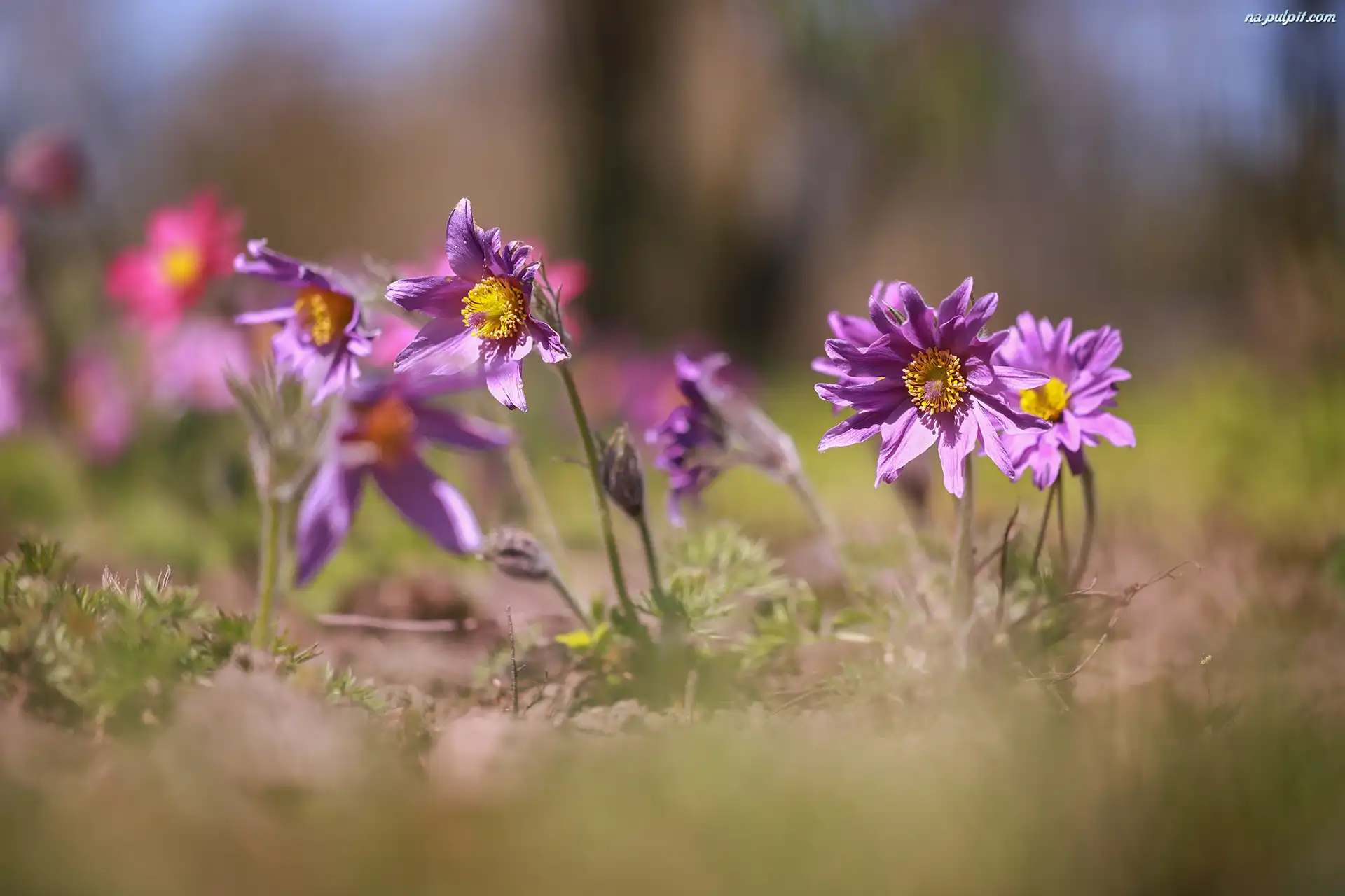 Sasanki, Rozświetlone, Fioletowe, Kwiaty Na Pulpit