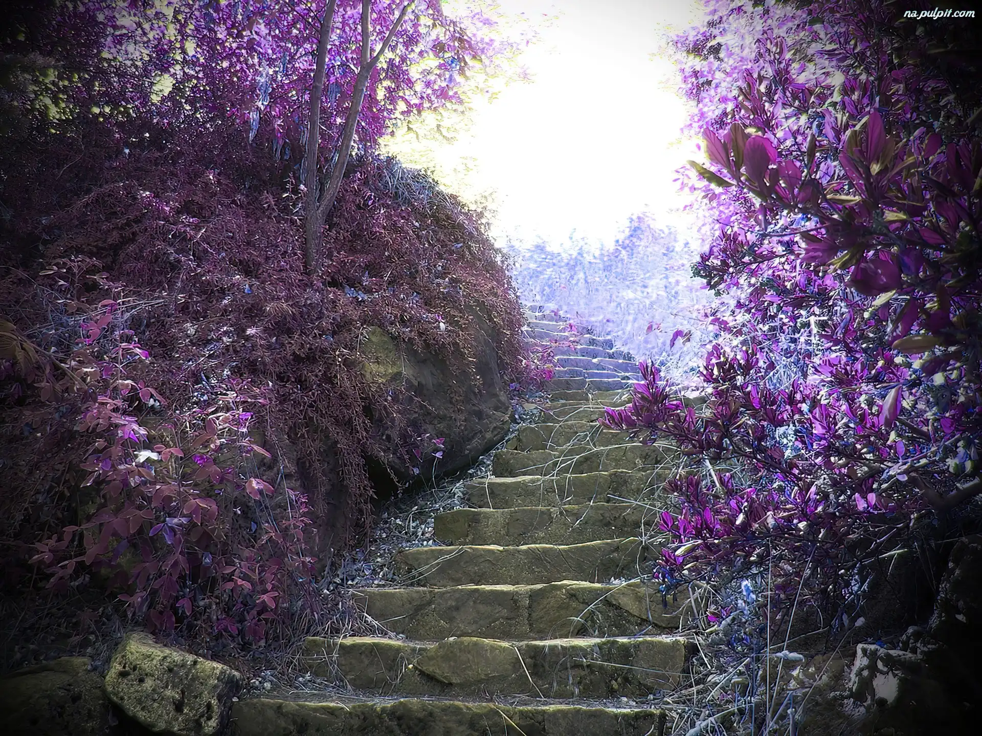 Kwiaty, Droga, Schody, Drzewa Na Pulpit