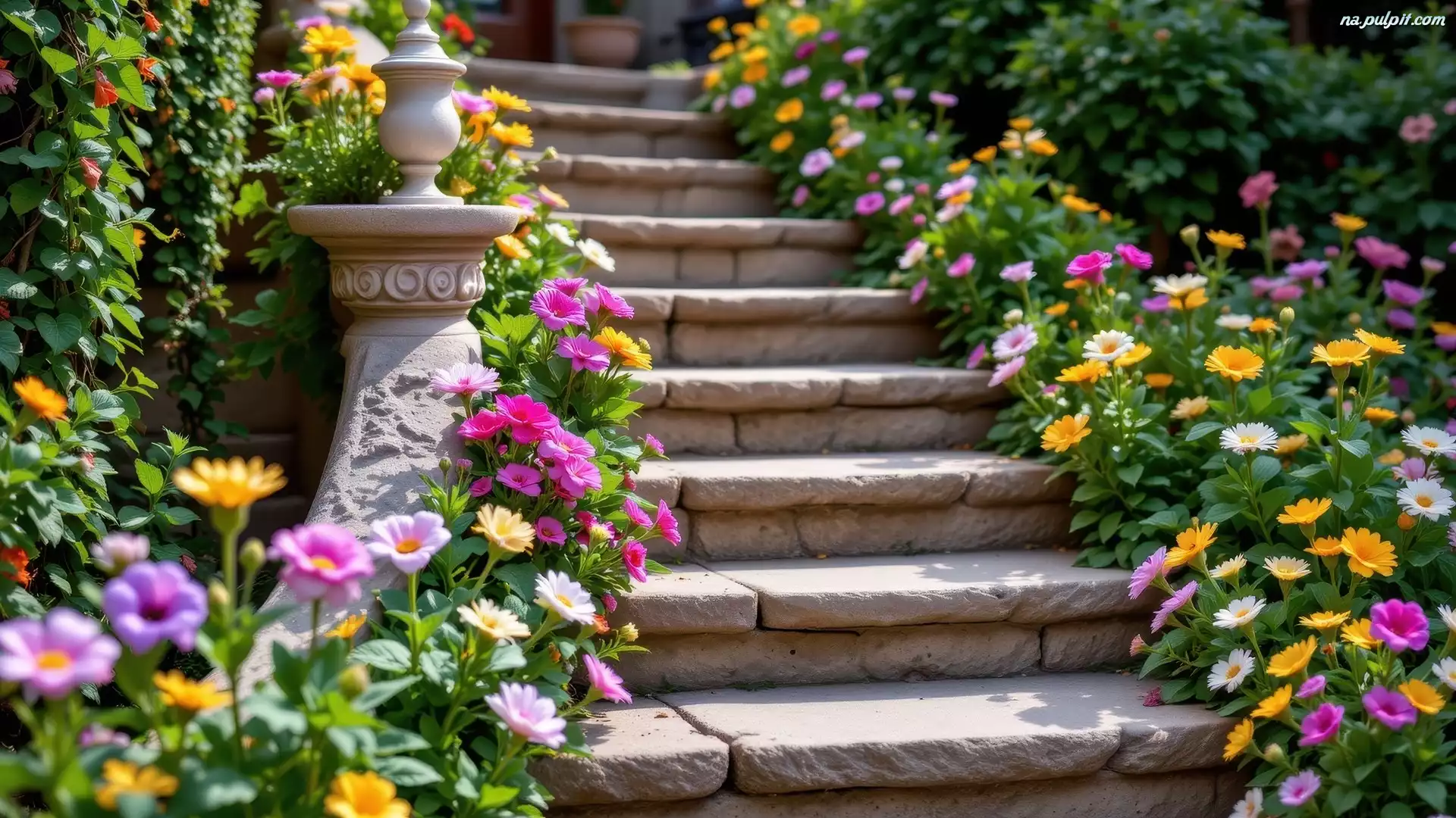 Kwiaty, Kolorowe, Schody Na Pulpit
