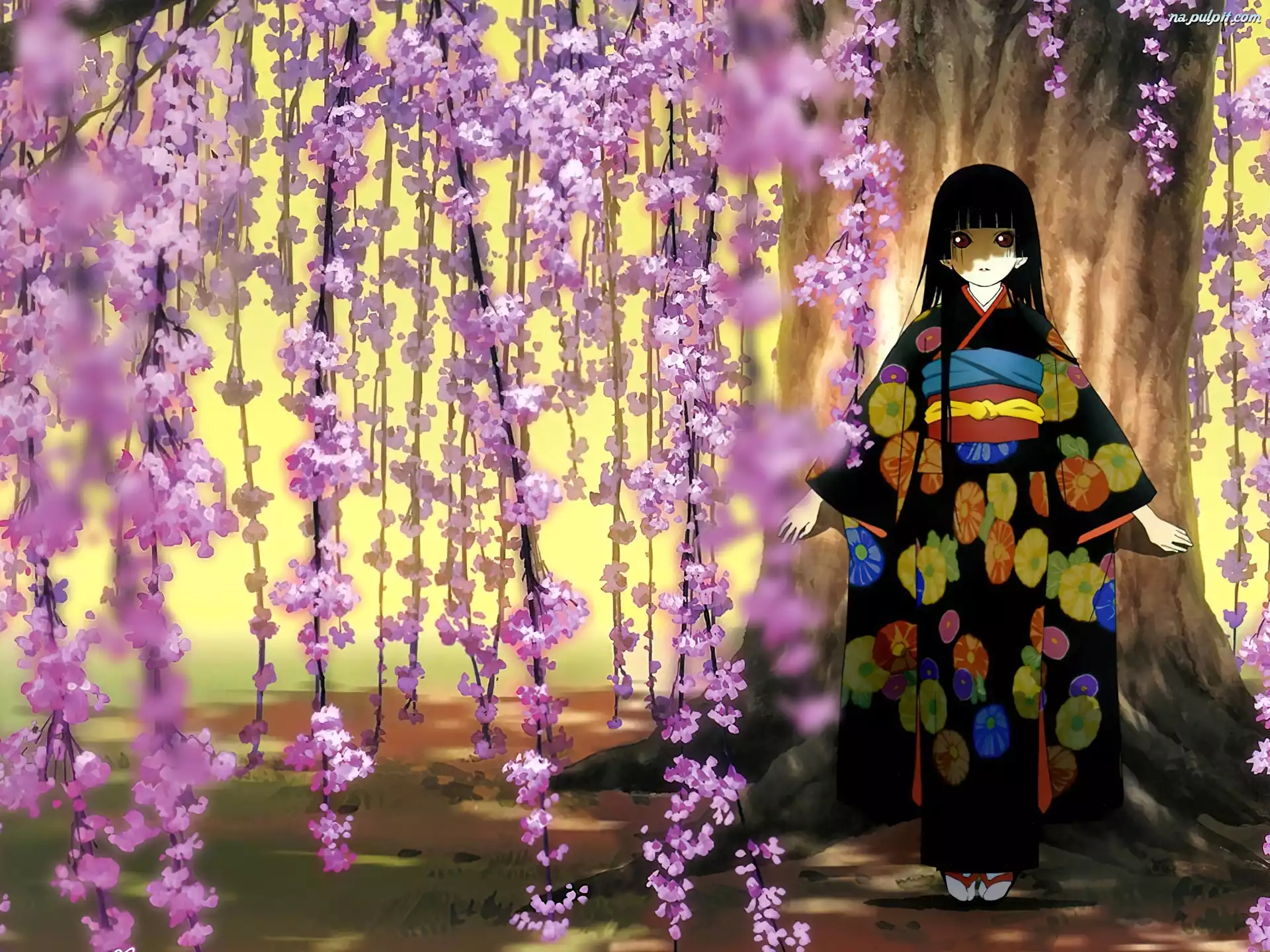 lilia, kobieta, twarz, Jigoku Shoujo znaki, świece, Jigoku Shoujo, kobieta uniform, Jigoku, Shoujo kobieta, kimono, Jigoku Shoujo, kwiaty kwiaty, Jigoku Shoujo, kobieta kimono, Jigoku Shoujo, kobieta chusta, oczy, Jigoku Shoujo, kobieta