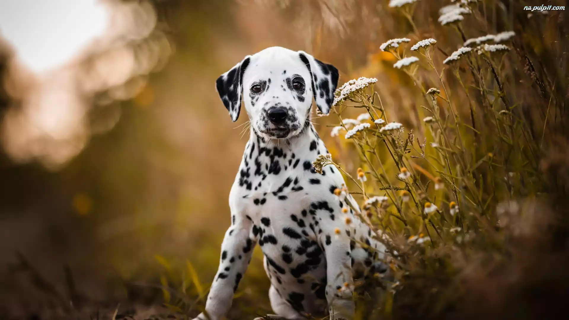 Szczeniak, Pies, Dalmatyńczyk, Kwiaty