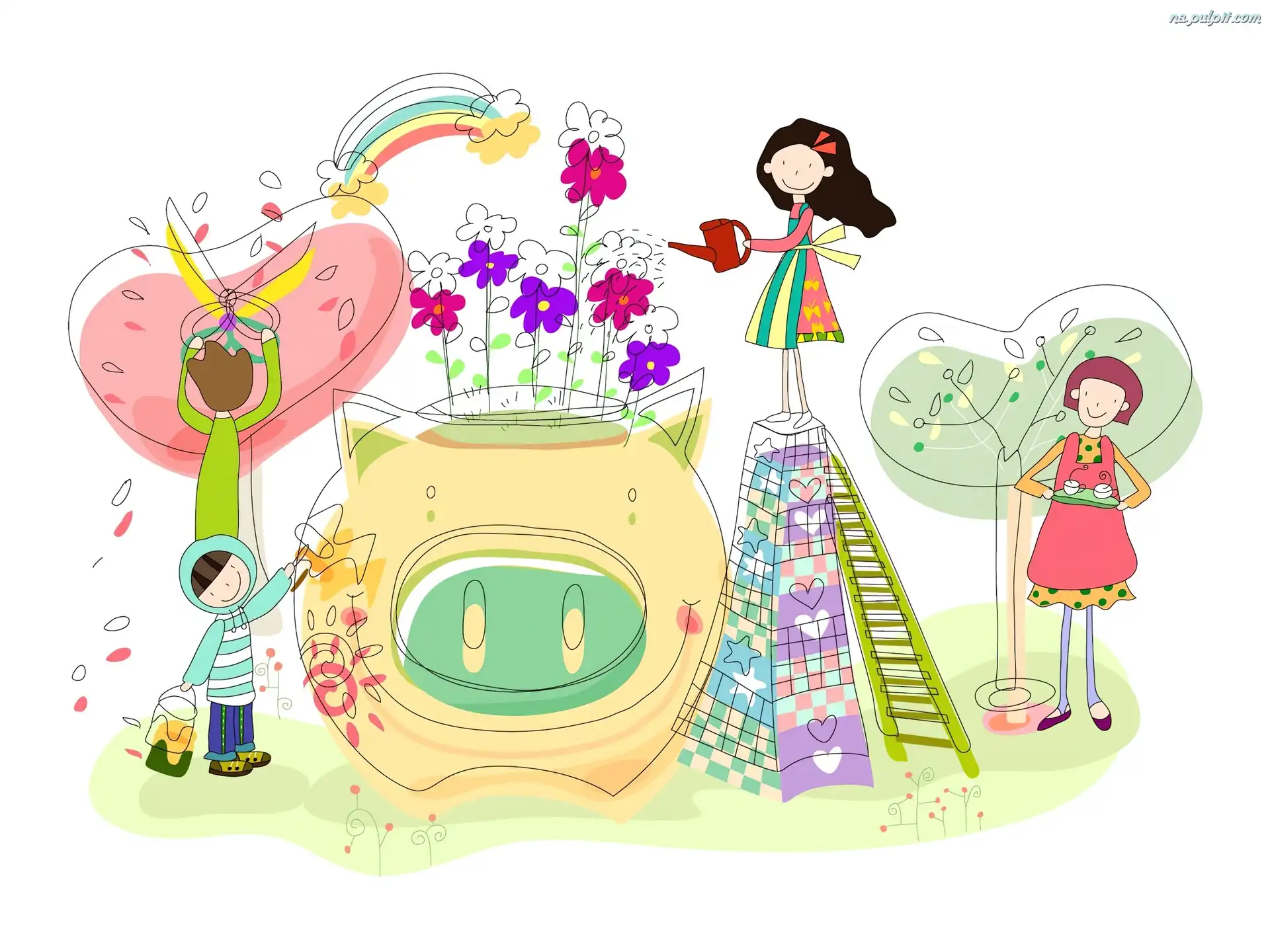 Kwiaty, Rodzinka, Szczęśliwa, Ogródek Na Pulpit