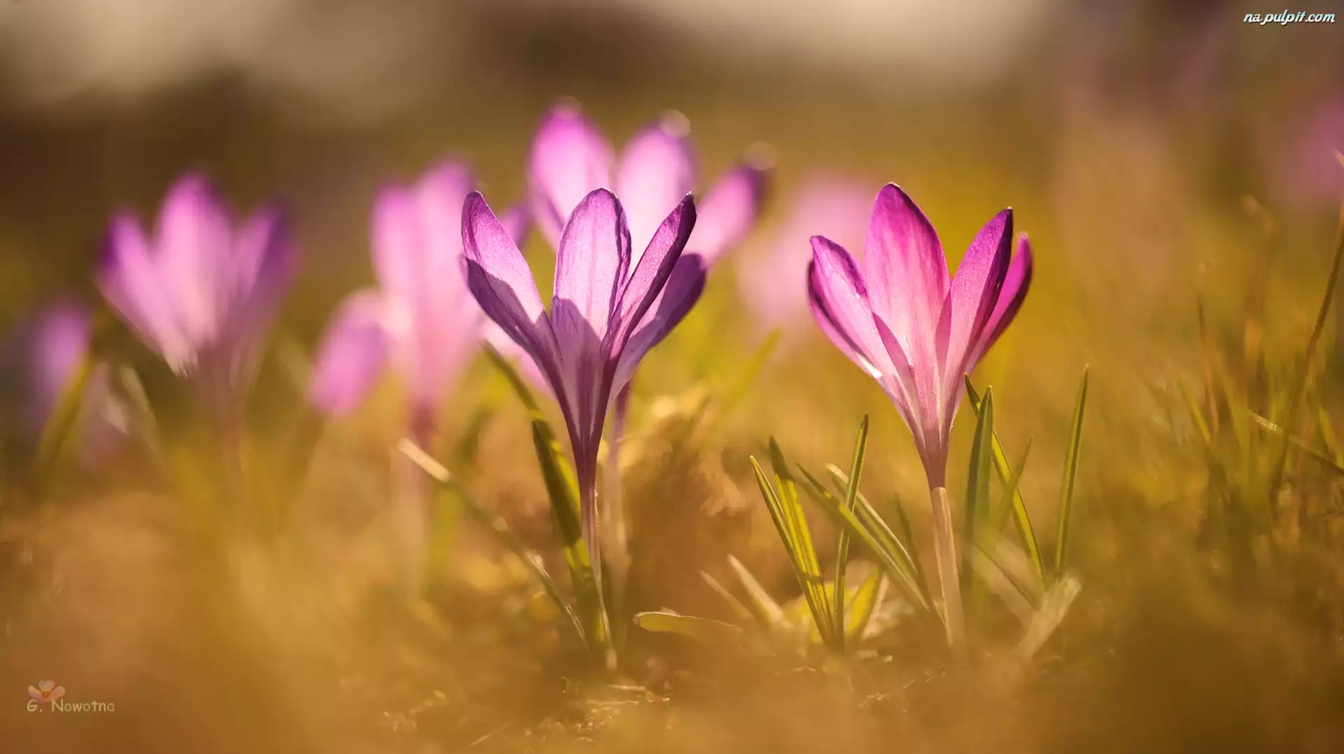 Rozmyte, Fioletowe, Krokusy, Kwiaty, Rozkwitające, Tło