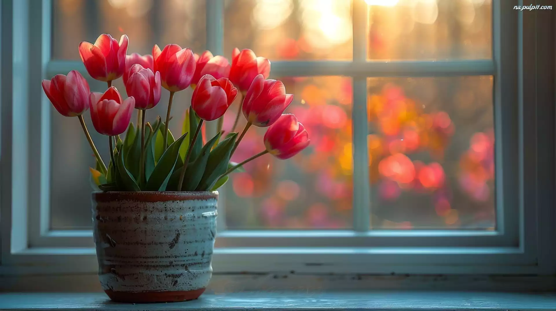 Doniczka, Kwiaty, Tulipany, Okno, Czerwone Na Pulpit