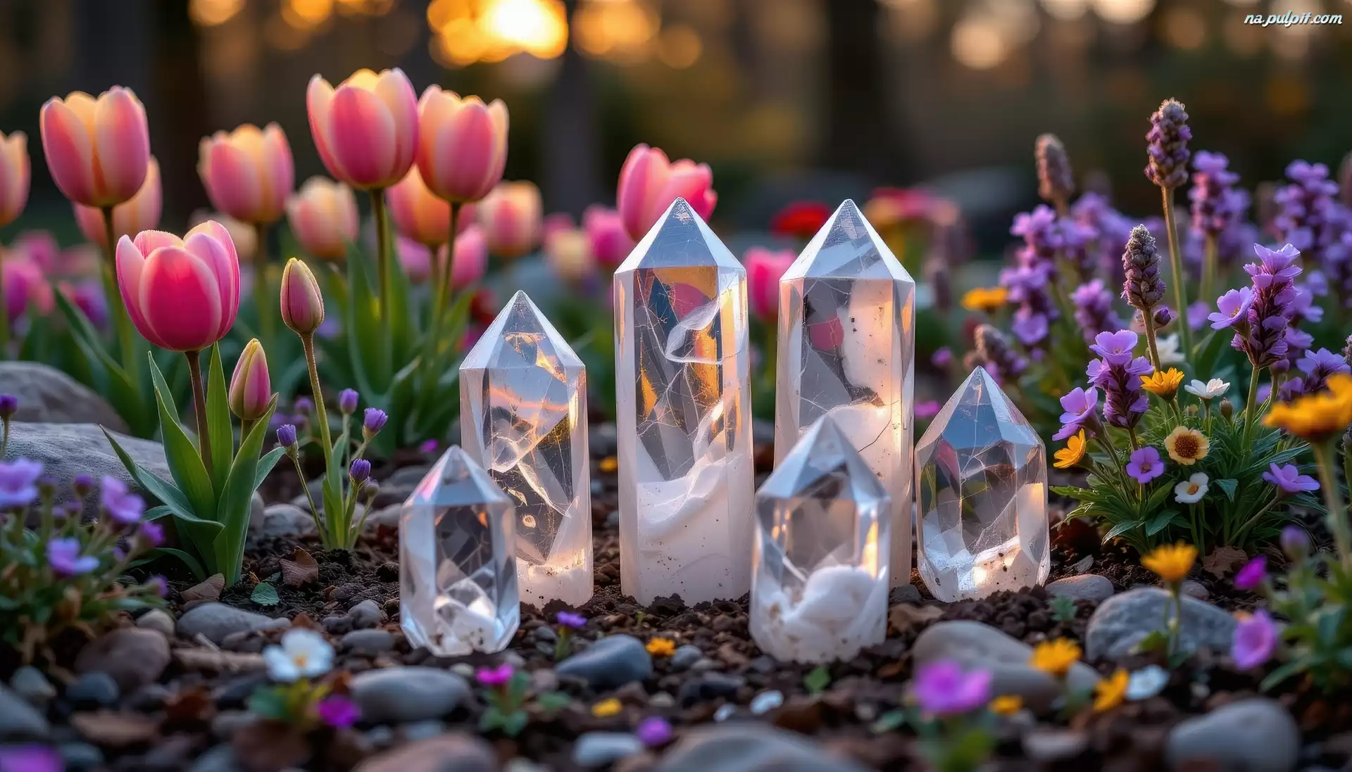 Tulipany, Lawenda, Kryształy, Kwiaty