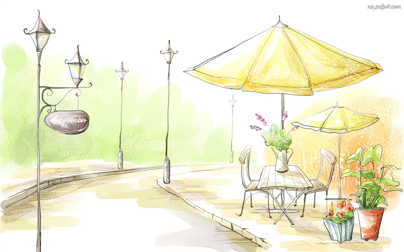 kwiaty, Stolik, Uliczka, Parasol Na Pulpit