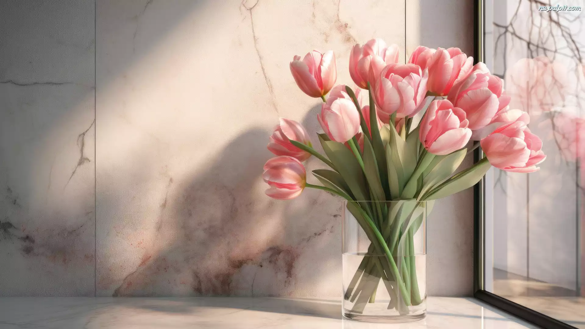 Tło, Bukiet, Wazon, Kwiaty, Tulipany, Różowe, Okno