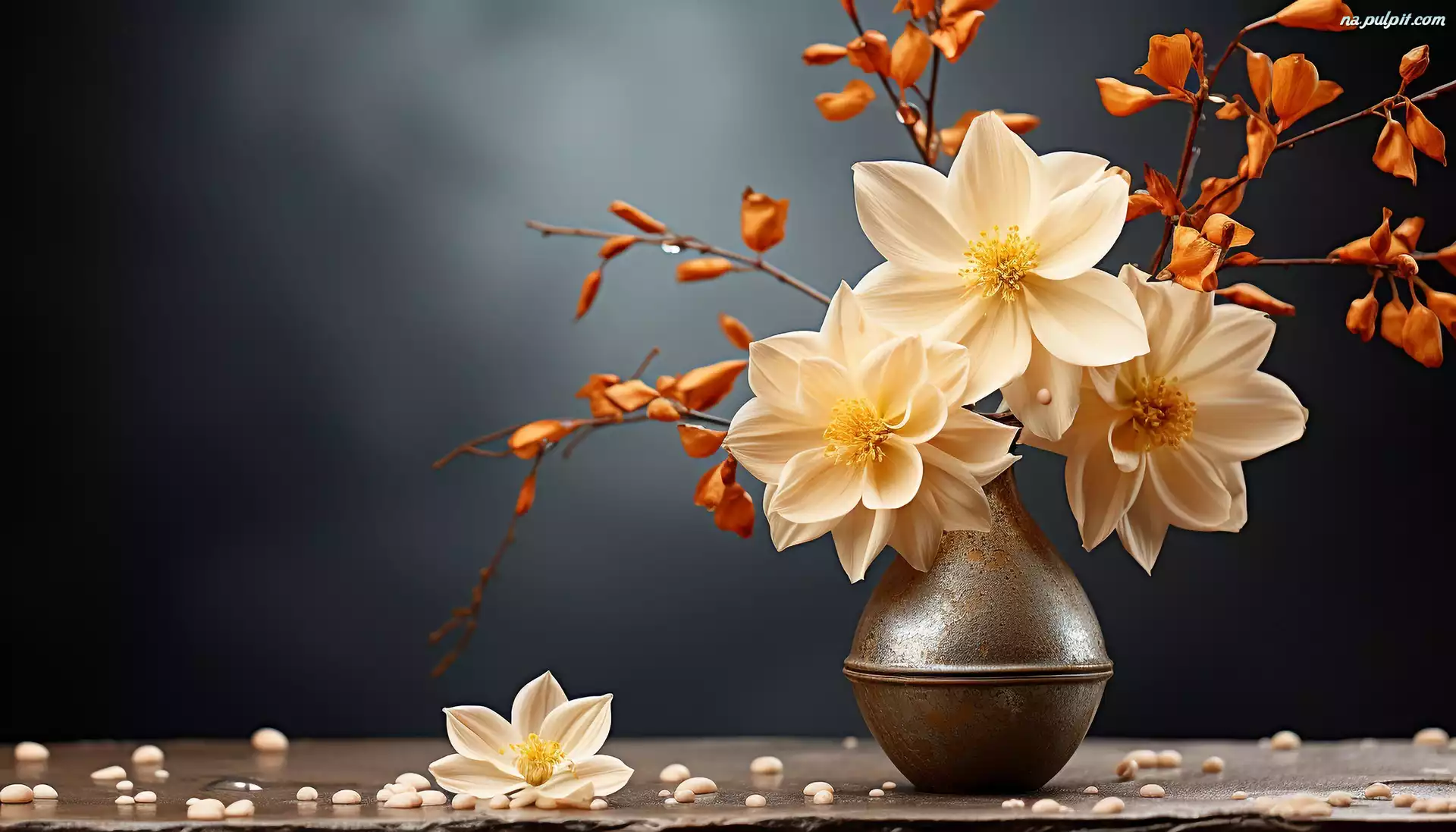 Kwiaty, Kremowe, Wazon Na Pulpit