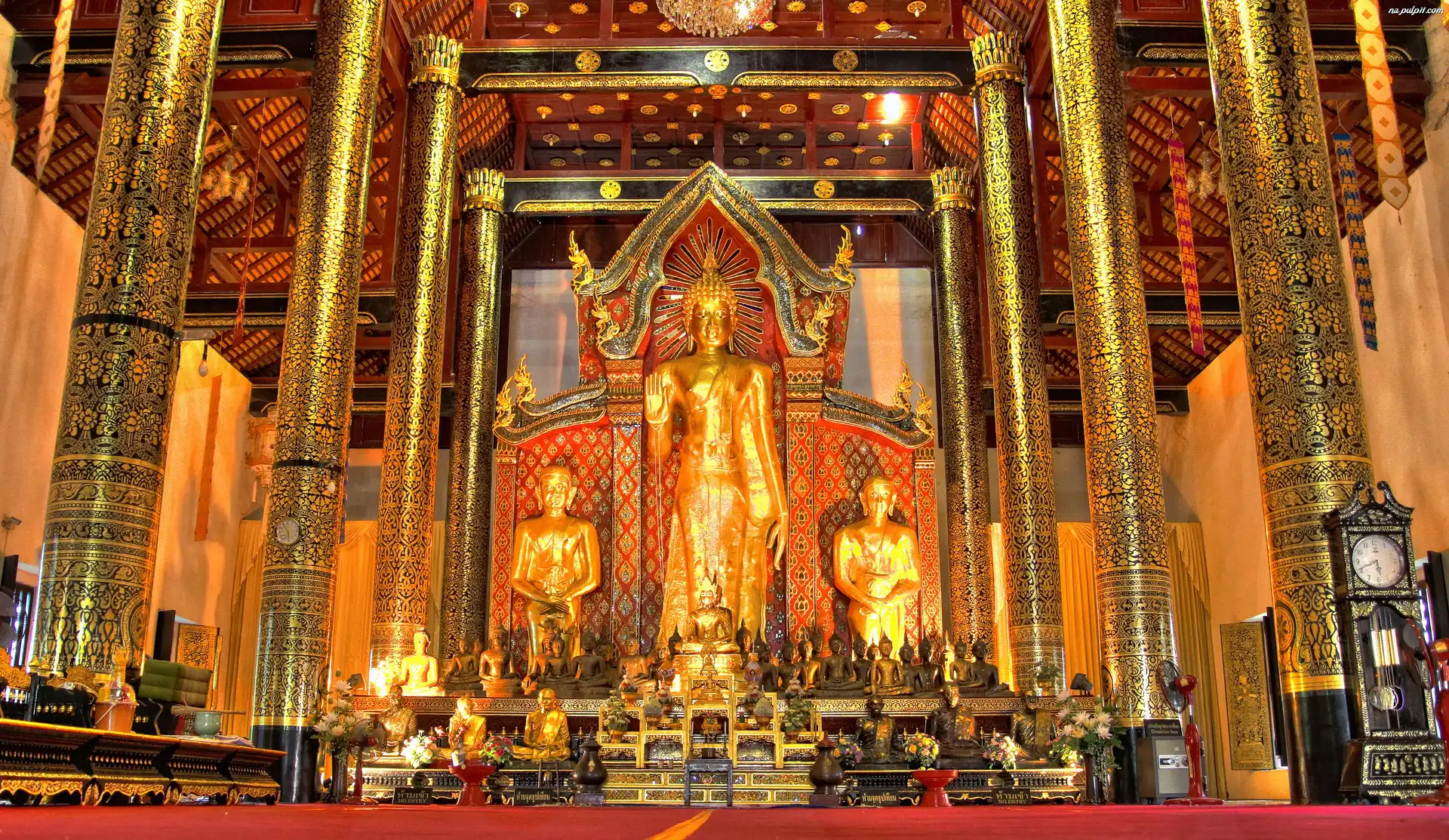 Kwiaty, Posągi, Świątynia, Zegar Na Pulpit