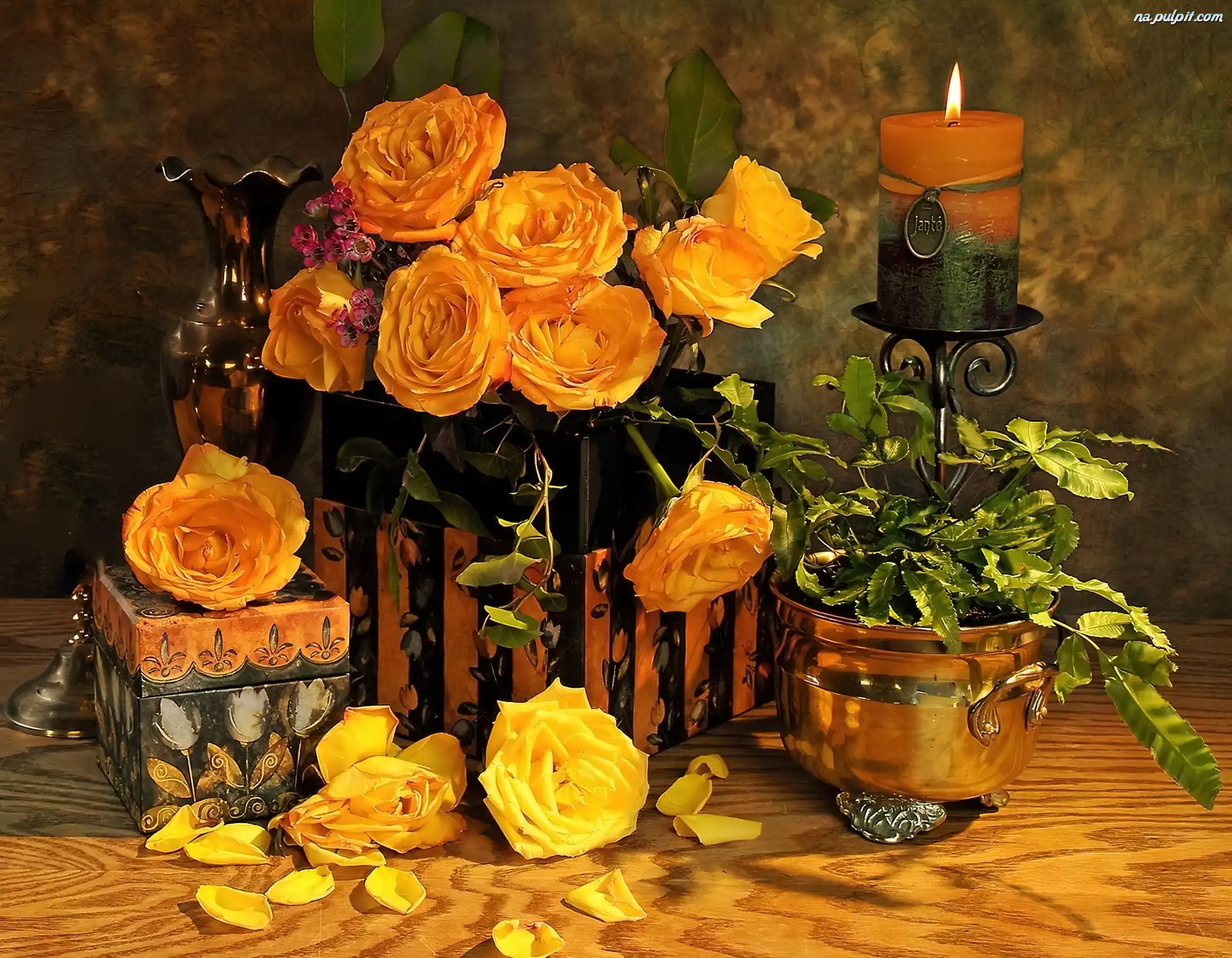 Świeca, Kwiaty, Róże Na Pulpit