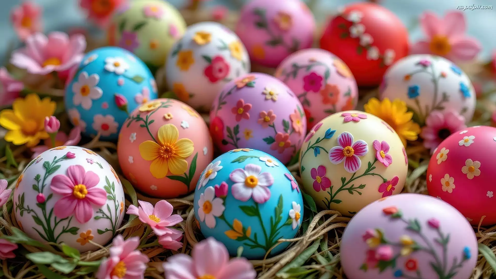 Wielkanoc, Kolorowe, Pisanki, Kwiaty