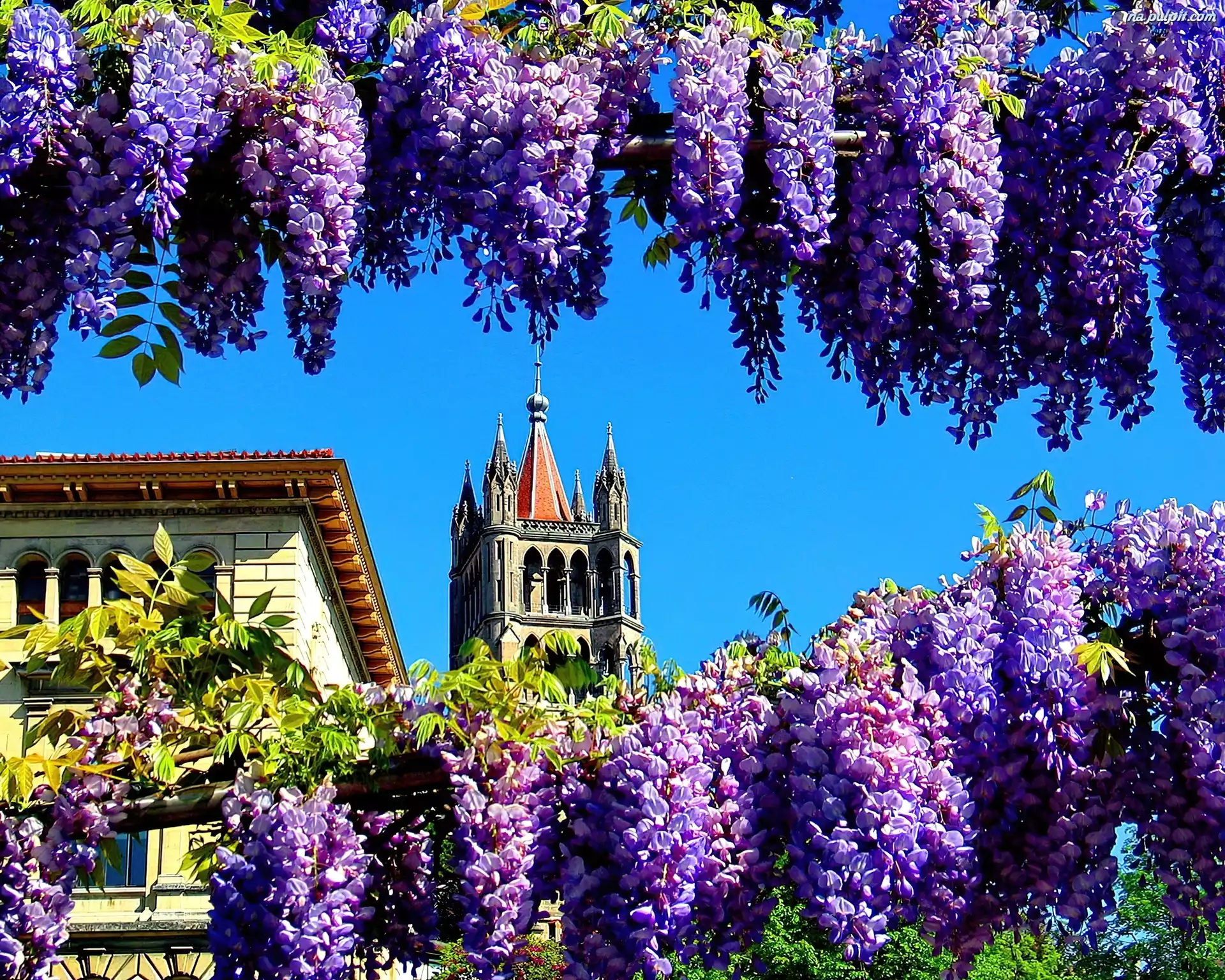 Wieża, Kwiaty, Wisterii Na Pulpit