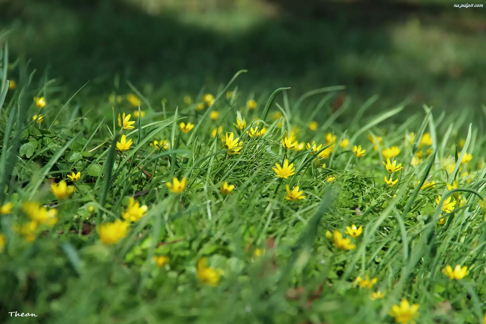 Kwiaty, Trawa, Ziarnopłon Wiosenny, Żółte