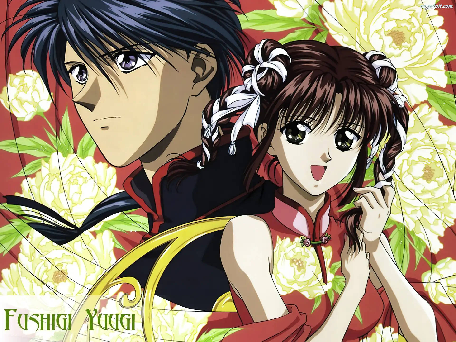 kwiaty, facet, para, Fushigi Yuugi, kobieta