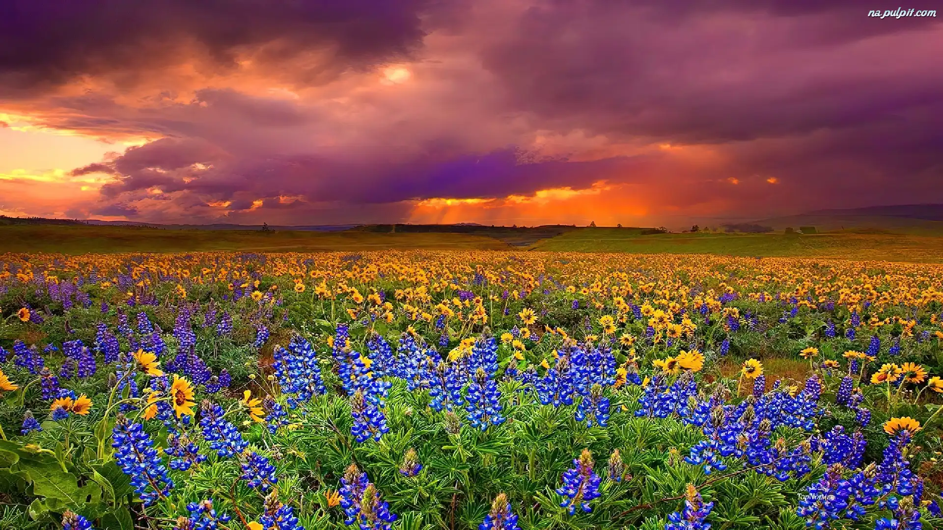 Kwiaty, Słońca, Zachód, Łąka Na Pulpit