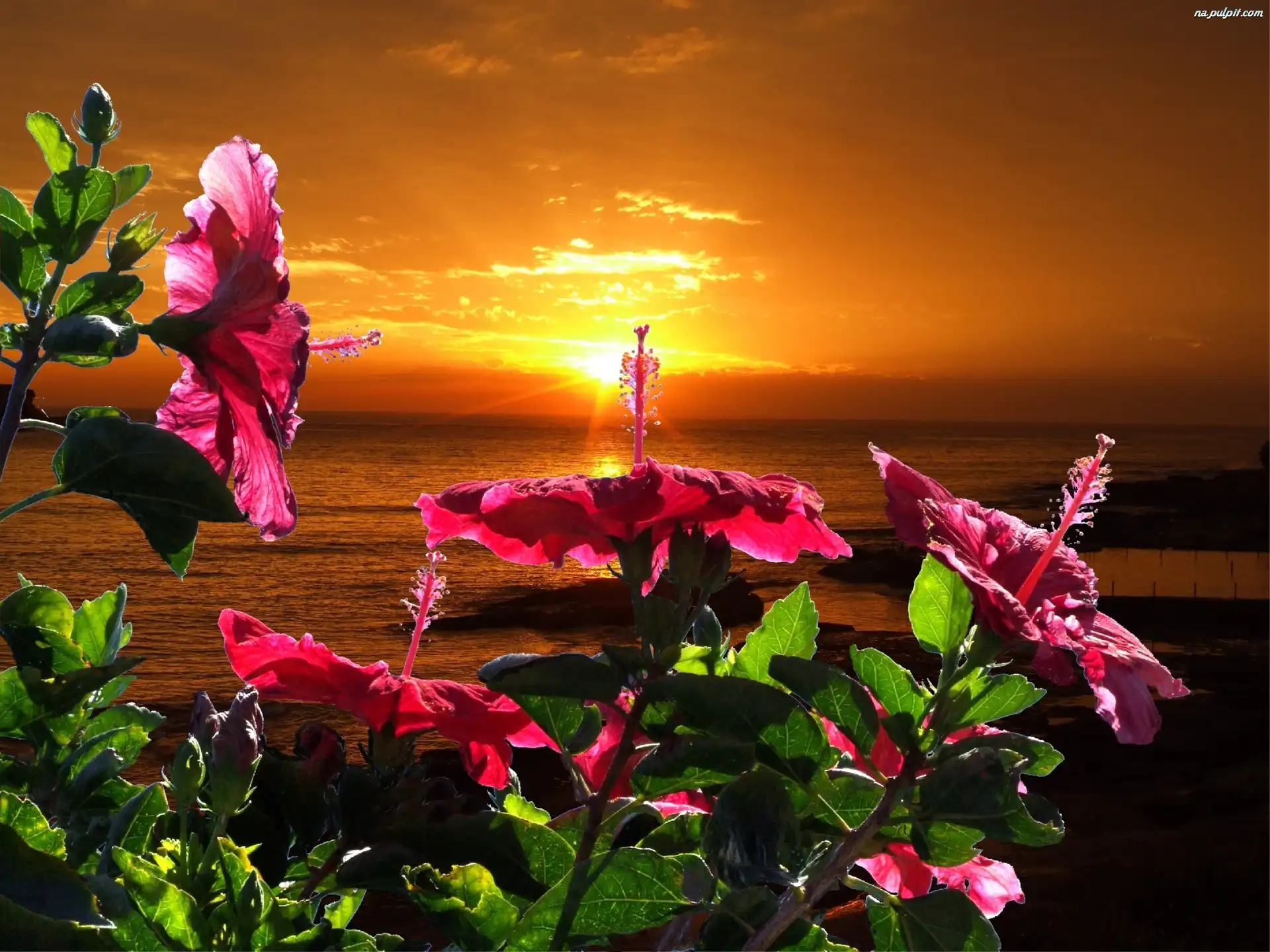 Kwiaty, Słońca, Zachód, Morze Na Pulpit