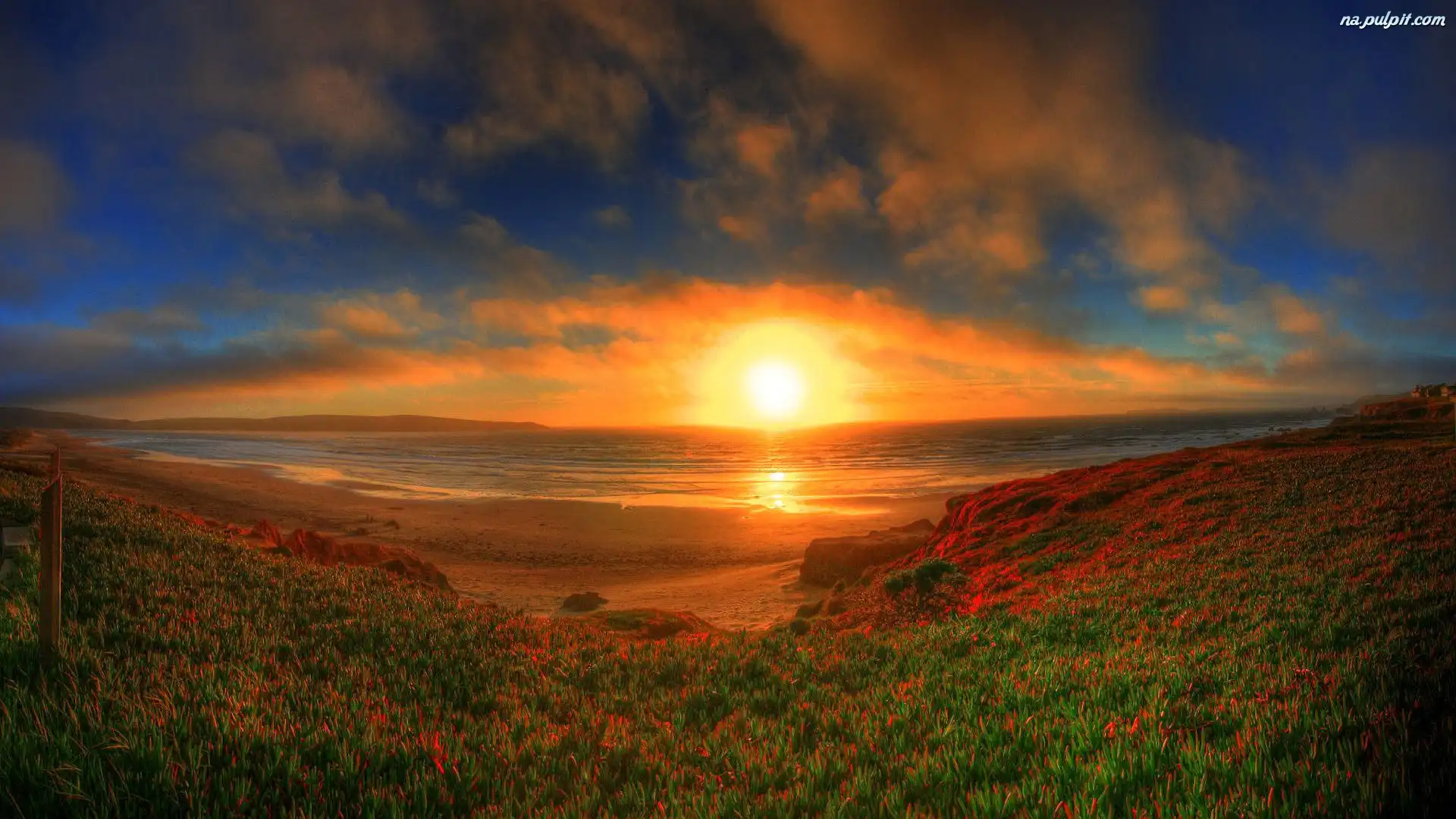 Kwiaty, Słońca, Zachód, Plaża Na Pulpit